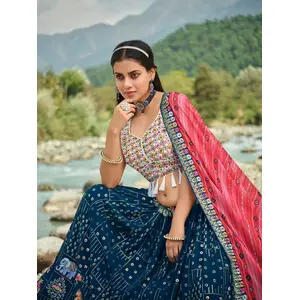 Womens Blue Faux Georgette Thread...
