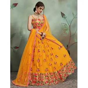 Womens Yellow Net Thread Embroidery...