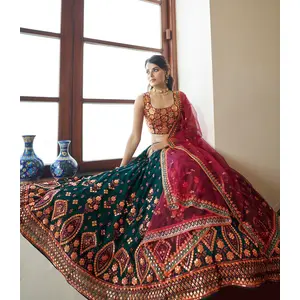 Womens green Net Zari Work Lehenga Set