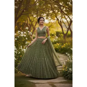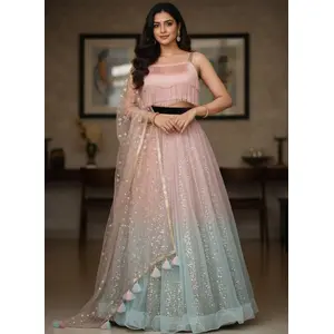 Light Green Embroidered Net Lehenga Set