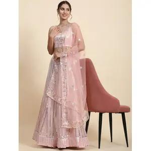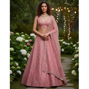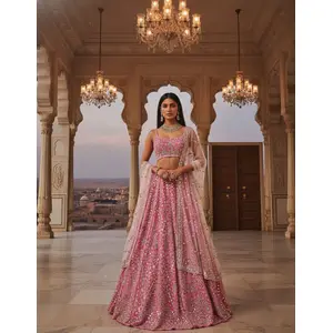 Pink Embroidered Satin Silk Lehenga Set