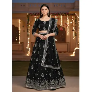 Embroidered Taffeta Silk Lehenga in...