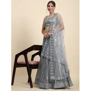 Gray Zari and Sequence Embroidery...