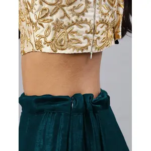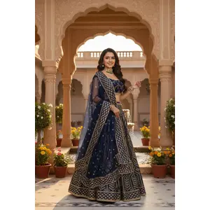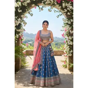 Blue Embroidered Malai Satin Silk...