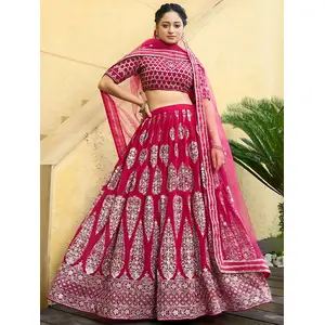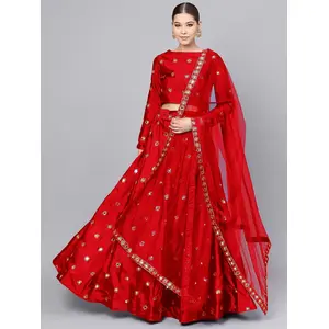 Womens Red Taffeta Mirror Lehenga Set