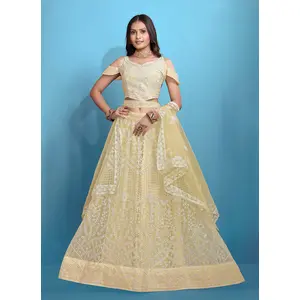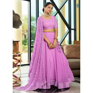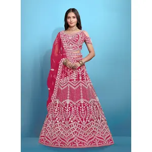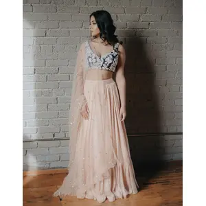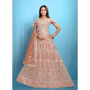 Peach Embroidered Silk Lehenga Set