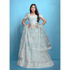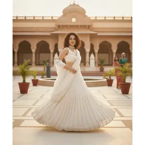Women's White Georgette Semi-stitched...