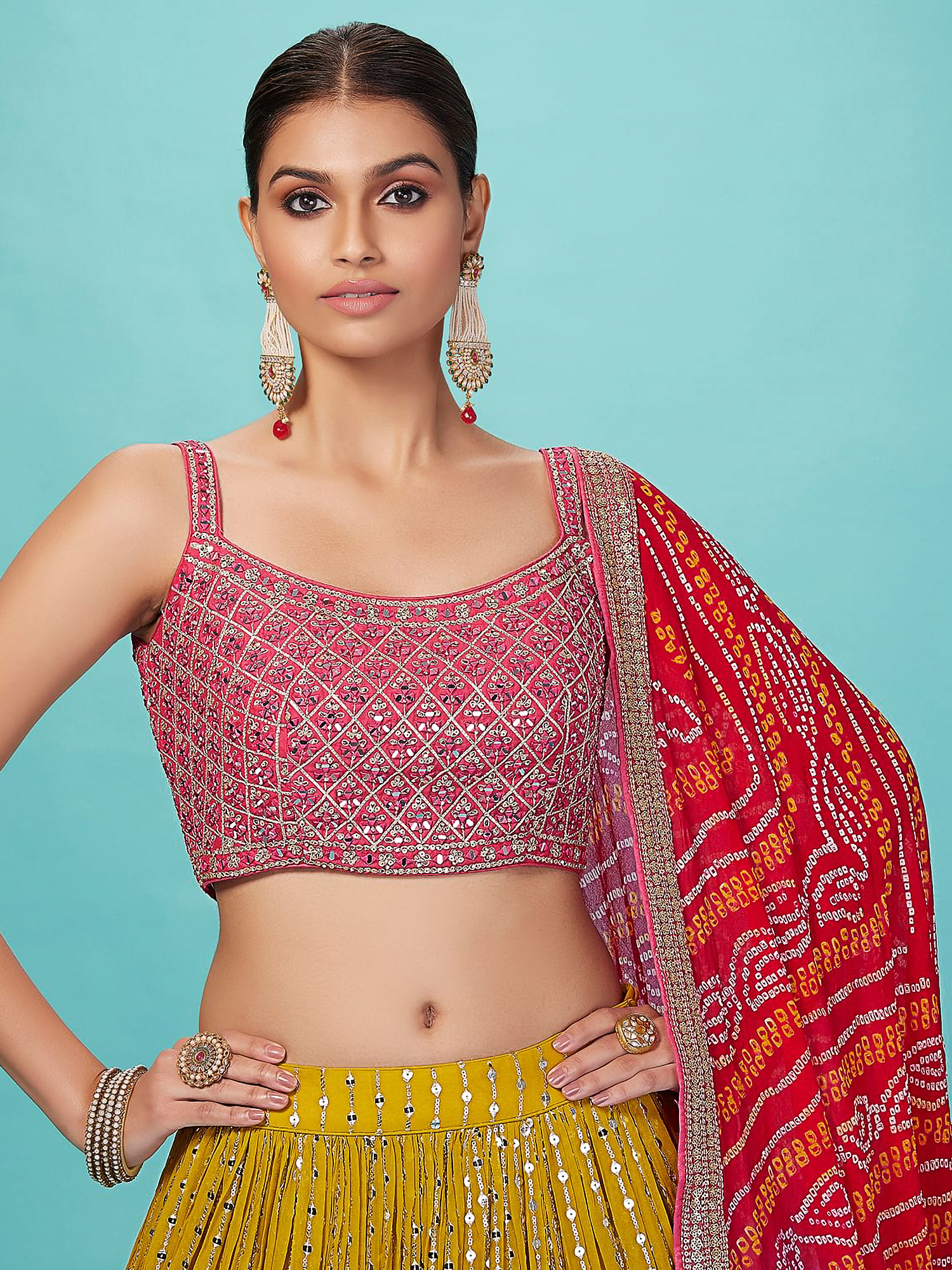 Pink Color Georgette Fabric Ethnic Festive Wear Lehenga For Ceremonial Looks