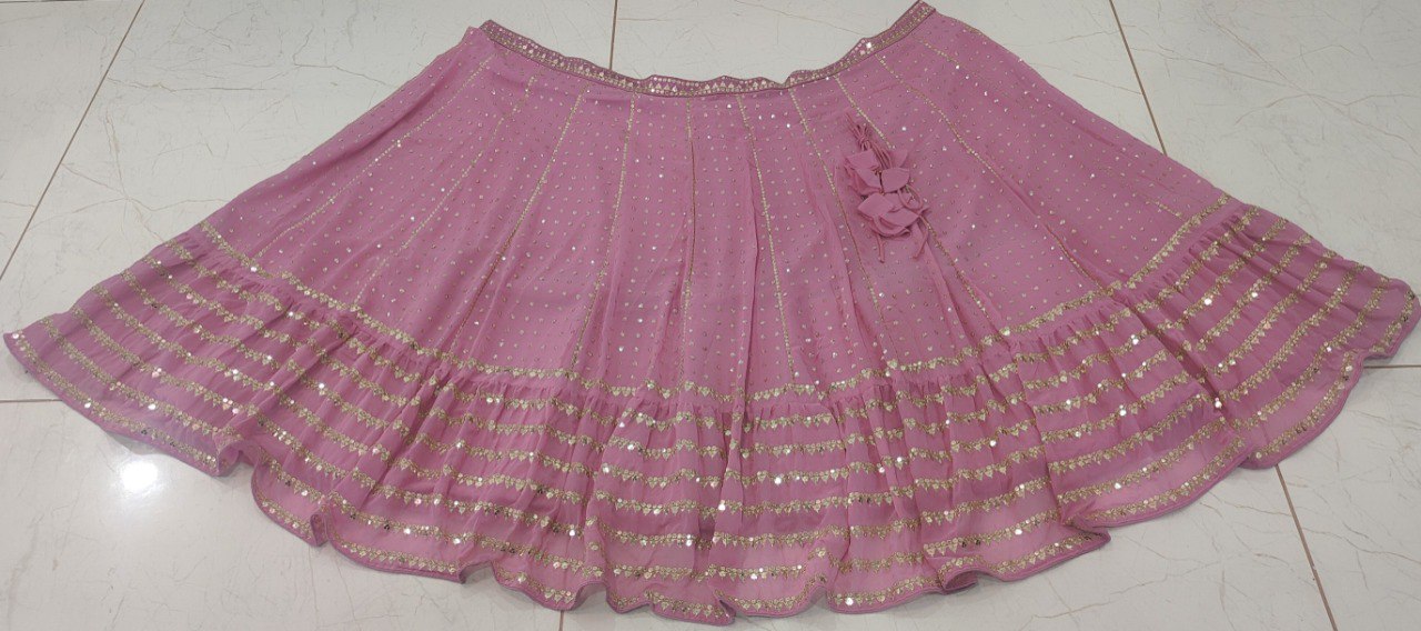 LEHNGA(BOTTOM): -FABRIC: - FAUX GEORGETTEINNER: - MICRO FABRICWORK: - 3MM, 5MM AND 9MM SEQUINS WITH ZARI EMBROIDERY WORKSTITCH: - SEMI STITCHED WITH CANCAN AND CANVASSIZE: - 42 HEIGHT AND 42 WAIST FLAIR: - 4 METERCHOLI(TOP): -FABRIC: - FAUX GEORGETTESIZE: - 0.70 METER CHOLI ALLOVER EMBOIDERED FABRIC 0.40 METER SLEEVES ALLOVER EMBROIDERED FABRICWORK: - 5MM SEQUINS EMBROIDERY WORK IN BLOUSE, 3MM, 5MM AND 9MM SEQUINS EMBROIDERY WORK IN SLEEVES STITCH: - UNSTITCHED FABRICDUPATTA: -FABRIC: - NETWORK: - 5MM, 9MM SEQUENCE AND JARI EMBROIDERY WORK SIZE: - 2.25 METER DUPATTASTITCH: - FULL STITCHADDITIONALWASH CARE: - DRY CLEAN ONLYCOLOR: - PRODUCT COLOR MAY SLIGHTLY VARY DUE TO PHOTOGRAPHIC LIGHTNING SOURCES OR YOUR DEVICE DISPLAY SETTINGSTHESE ARE MADE TO ORDER DESIGNER STYLES, HENCE EXPECT A SLIGHT VARIATION FROM THE IMAGE DISPLAYEDIN THE BOX 1 LEHENGA 1 DUPATTA 0.70 METER BLOUSE FABRIC 0.40 METER SLEEVES FABRIC (1 SET OF HAND MADE TASSELS)ALTERNATIVEHANDMADE TASSELS MAY DIFFER FROM THE PHOTOS AND VIDEOS. TASSELS WILL BE AVAILABLE AS LONG AS THE CURRENT STOCK LASTS. ALTERNATIVELY, NEW STOCK MAY TAKE SOME TIME TO ARRIVE. WE ARE NOT STRICTLY BOUND TO PROVIDE TASSELS.