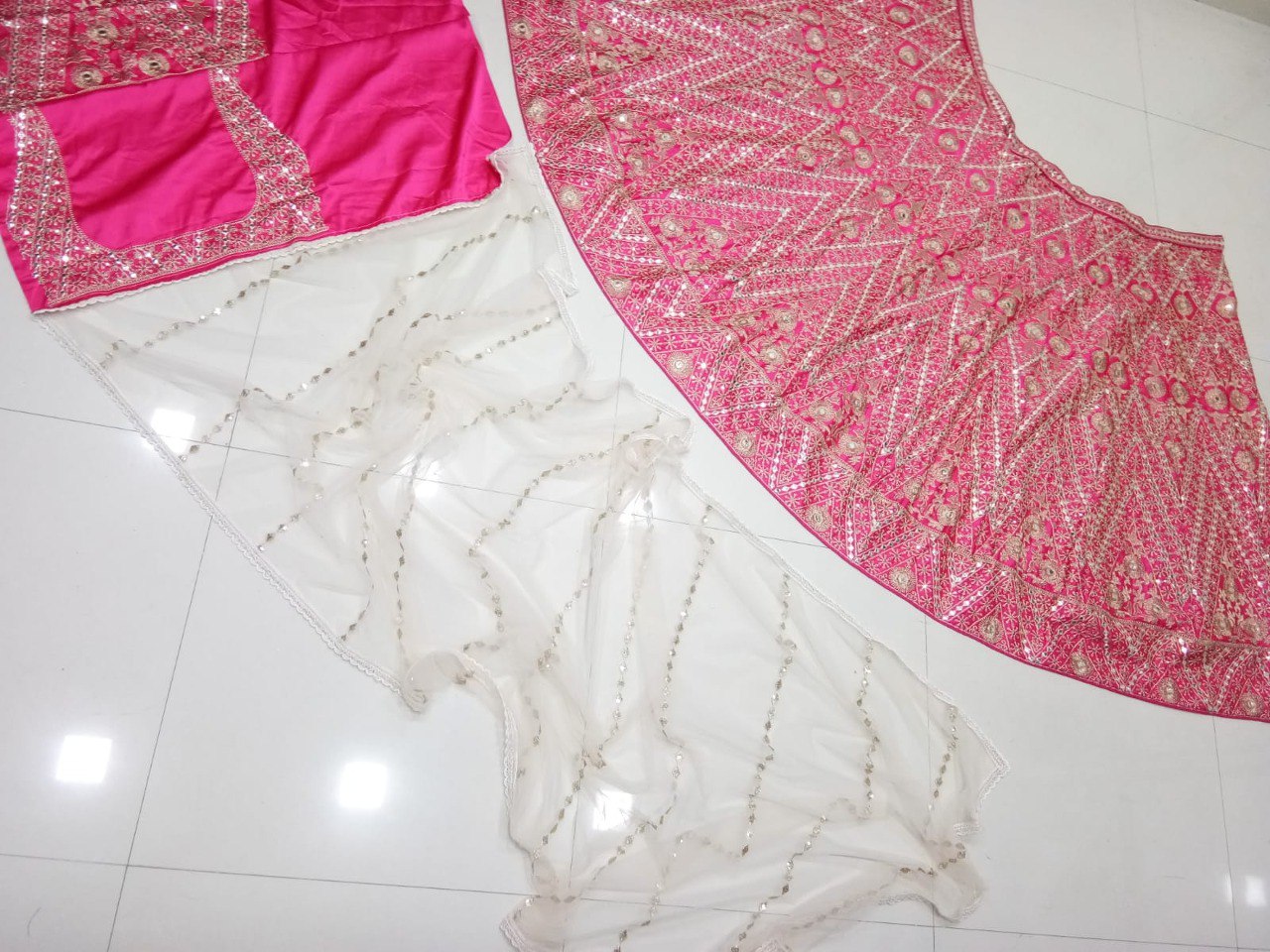 LEHENGA(BOTTOM)FABRIC:- DEVSENA SILKINNER:- MICROWORK:- 3MM SEQUINS, JARI AND DORI WITH PAPER MIRROR EMBROIDERY WORKSTITCH:- SEMI STITCHED(WITH CANCAN AND CANVAS)SIZE:- 42HEIGHT AND 42WAISTFLAIR:- 3.25 TO 3.50 METER FLAIRCOLOR:- PINK COLOR CHOLI(TOP)FABRIC:- DEVSENA SILKSIZE:- 0.80 METER FABRICWORK:- 3MM SEQUINS, JARI AND DORI WITH PAPER MIRROR EMBROIDERY WORKSTITCH:- UN STITCHED FABRICCOLOR:- PINK COLOR EBROIDERY WORK SIZE:- FRONT HEIGHT-14 WIDTH-20, , BACK HEIGHT-14 WIDTH-20DUPATTAFABRIC:- NETWORK:- 3MM 3MM SEQUINS WITH JARI EMBROIDERY WORKSIZE:- 2.25 METER DUPATTASTITCH:- FULL STITCHEDCOLOR:- OFF WHITEADDITIONALWASH CARE: - DRY CLEAN ONLYCOLOR: - PRODUCT COLOR MAY SLIGHTLY VARY DUE TO PHOTOGRAPHIC LIGHTNING SOURCES OR YOUR DEVICE DISPLAY SETTINGSTHESE ARE MADE TO ORDER DESIGNER STYLES, HENCE EXPECT A SLIGHT VARIATION FROM THE IMAGE DISPLAYEDIN THE BOX 1 PIECE LEHENGA 1 PIECE DUPATTA 1 PIECE BLOUSE FABRIC.