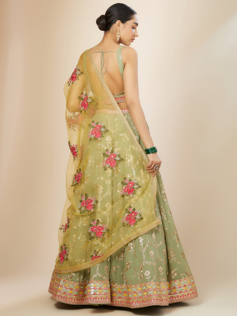 Pista Color Georgette Fabric Ethnic Festive Wear Lehenga For Ceremonial Looks