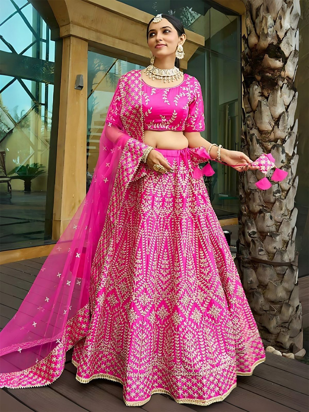 LEHNGA(BOTTOM)FABRIC:- MALAI SATIN SILKINNER:- MICRO FABRICWORK:- CHAPAT JARI AND CODING DORI EMBROIDERY WORKSTITCH:- SEMI STITCHED WITH CANCAN AND CANVASSIZE:- 42HEIGHT AND 42WAISTFLAIR:- 3.3 METER FLAIR CHOLI(TOP)FABRIC:- MALAI SATIN SILKSIZE:- 0.80 METER FABRICWORK:- CHAPAT JARI AND CODING DORI EMBROIDERY WORK STITCH:- UN STITCHED FABRICINNER:- MICRO FABRICDUPATTAFABRIC:- NETWORK:- CHAPAT JARI AND CODING DORI EMBROIDERY WORK SIZE:- 2.25 METER DUPATTASTITCH:- FULL STITCHEDADDITIONALWASH CARE: - DRY CLEAN ONLYCOLOR: - PRODUCT COLOR MAY SLIGHTLY VARY DUE TO PHOTOGRAPHIC LIGHTNING SOURCES OR YOUR DEVICE DISPLAY SETTINGSTHESE ARE MADE TO ORDER DESIGNER STYLES, HENCE EXPECT A SLIGHT VARIATION FROM THE IMAGE DISPLAYEDIN THE BOX 1 PIECE LEHENGA 1 PIECE DUPATTA 1 PIECE BLOUSE FABRIC (1 SET OF HAND MADE TASSELS)ALTERNATIVEHANDMADE TASSELS MAY DIFFER FROM THE PHOTOS AND VIDEOS. TASSELS WILL BE AVAILABLE AS LONG AS THE CURRENT STOCK LASTS. ALTERNATIVELY, NEW STOCK MAY TAKE SOME TIME TO ARRIVE. WE ARE NOT STRICTLY BOUND TO PROVIDE TASSELS.