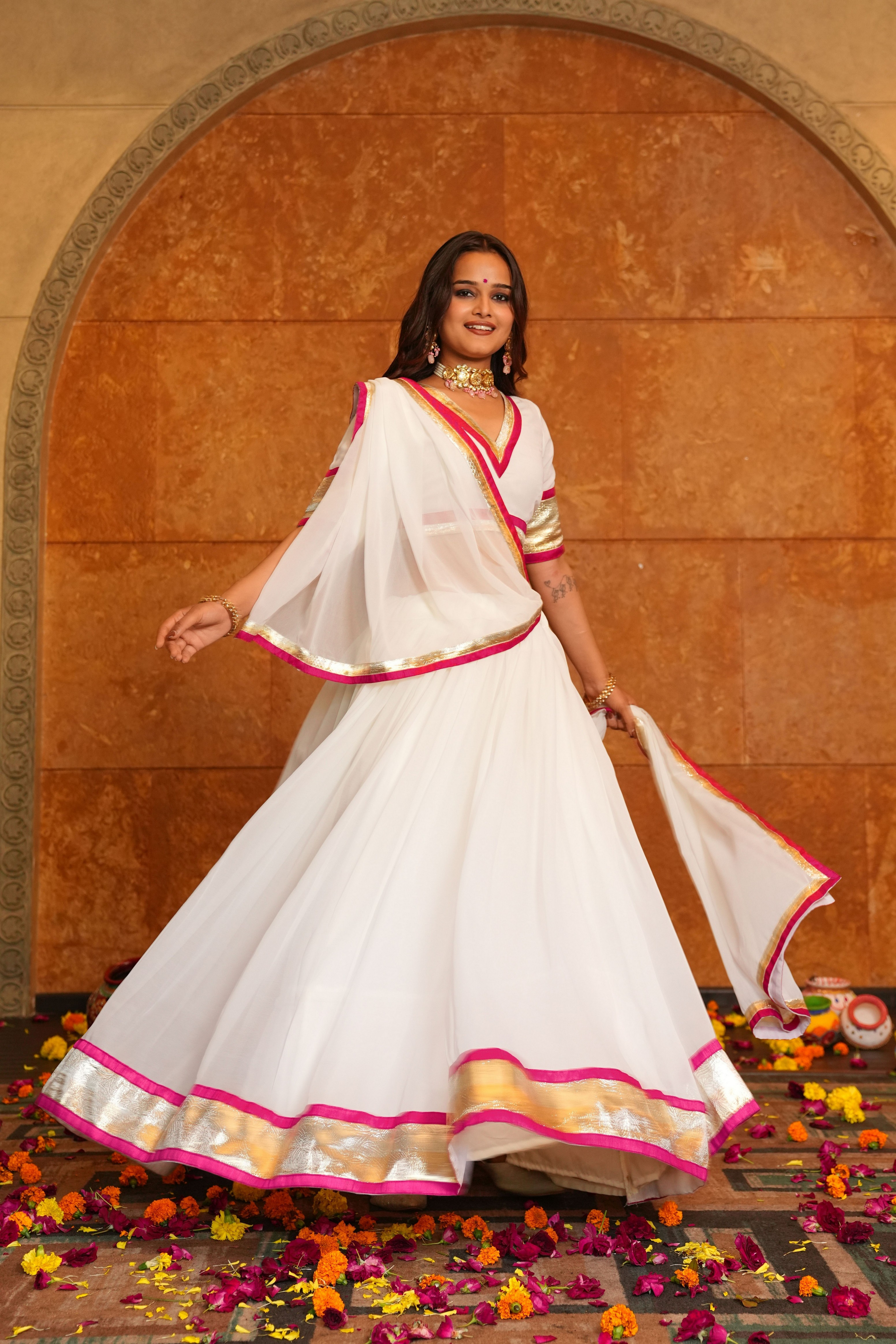 White Color Ethnic Festive Special Georgette Fabric Partywear Lehenga