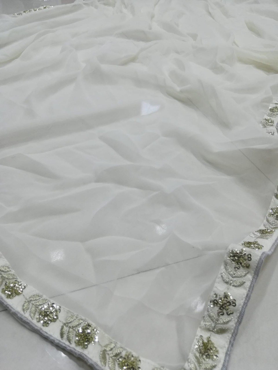 White Sequin Embroidered Georgette Lehenga Set