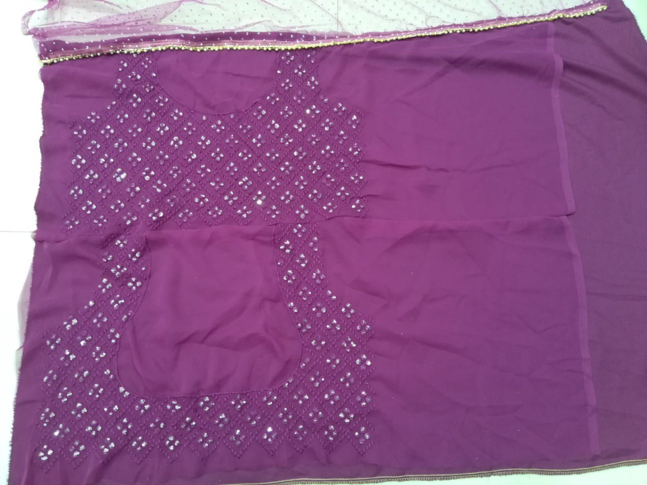 LEHENGA(BOTTOM)FABRIC: - FAUX GEORGETTEINNER: - MICRO FABRICWORK: - 3MM SEQUINS WITH THREAD EMBROIDERY WORKSTITCH: - SEMISTITCHED (WITH CANVAS)SIZE: - 42HEIGHT AND 42WAISTFLAIR: - 3 METERCHOLI(TOP)FABRIC: - FAUX GEORGETTEINNER: - MICROSIZE: - 0.80 METER FABRICWORK: - 3MM SEQUINS WITH THREAD EMBROIDERY WORKSTITCH: - UNSTITCHED FABRICEMBROIDERY WORK SIZE: - FRONT HEIGHT-14 WIDTH-18, , , BACK HEIGHT-14 WIDTH-18, , , DUPATTAFABRIC: - NETWORK: - DUE DROP WORKSIZE: - 2.25 METER DUPATTASTITCH: - FULL STITCHEDADDITIONALWASH CARE: - DRY CLEAN ONLYCOLOR: - PRODUCT COLOR MAY SLIGHTLY VARY DUE TO PHOTOGRAPHIC LIGHTNING SOURCES OR YOUR DEVICE DISPLAY SETTINGSTHESE ARE MADE TO ORDER DESIGNER STYLES, HENCE EXPECT A SLIGHT VARIATION FROM THE IMAGE DISPLAYED.