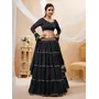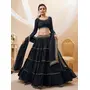 Elevate your ethnic look with this black georgette lehenga featuring lehariya work. Designed for festive occasions and celebrations, it offers a graceful flow and timeless appeal.Crafted from lightweight georgette fabric with a semi-stitched finish, this lehenga ensures comfort and easy customization. Dry clean recommended.