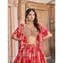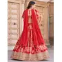 Elevate your ethnic look with this red chinnon lehenga featuring dori embroidery work. Designed for festive occasions and celebrations, it offers a graceful flow and timeless appeal.Crafted from lightweight chinnon fabric with a semi-stitched finish, this lehenga ensures comfort and easy customization. Dry clean recommended.