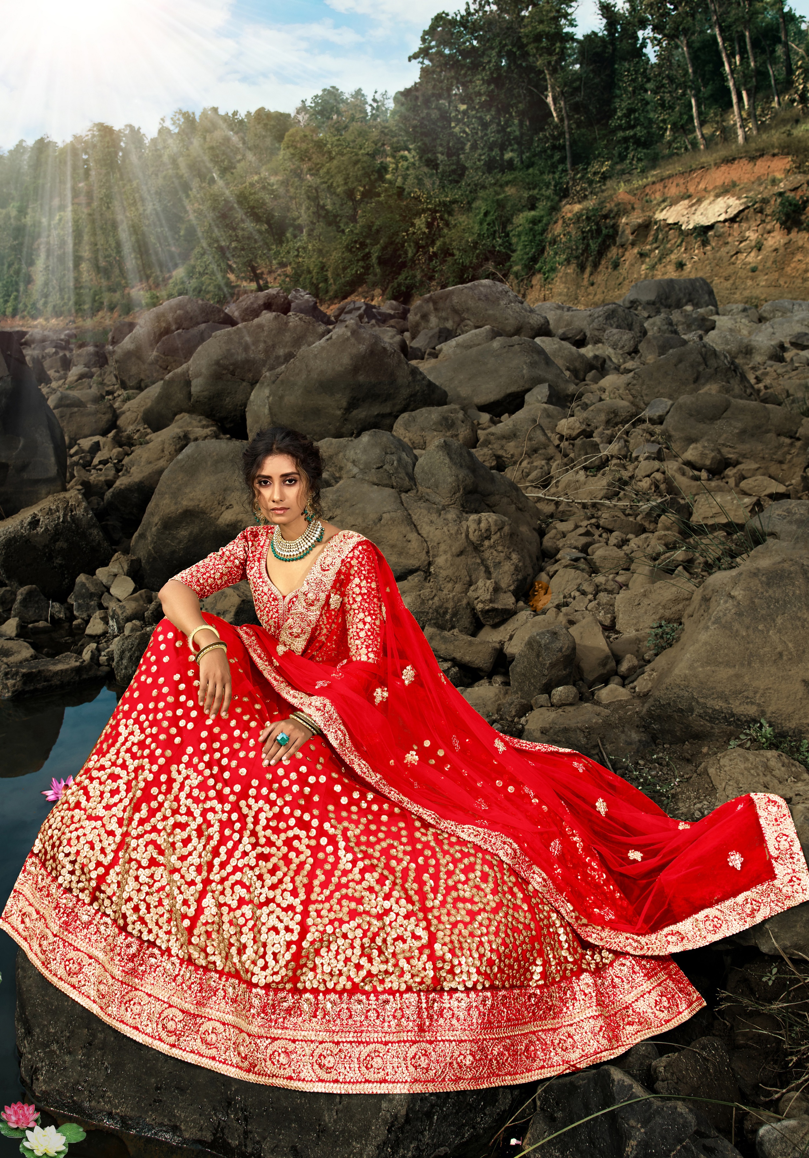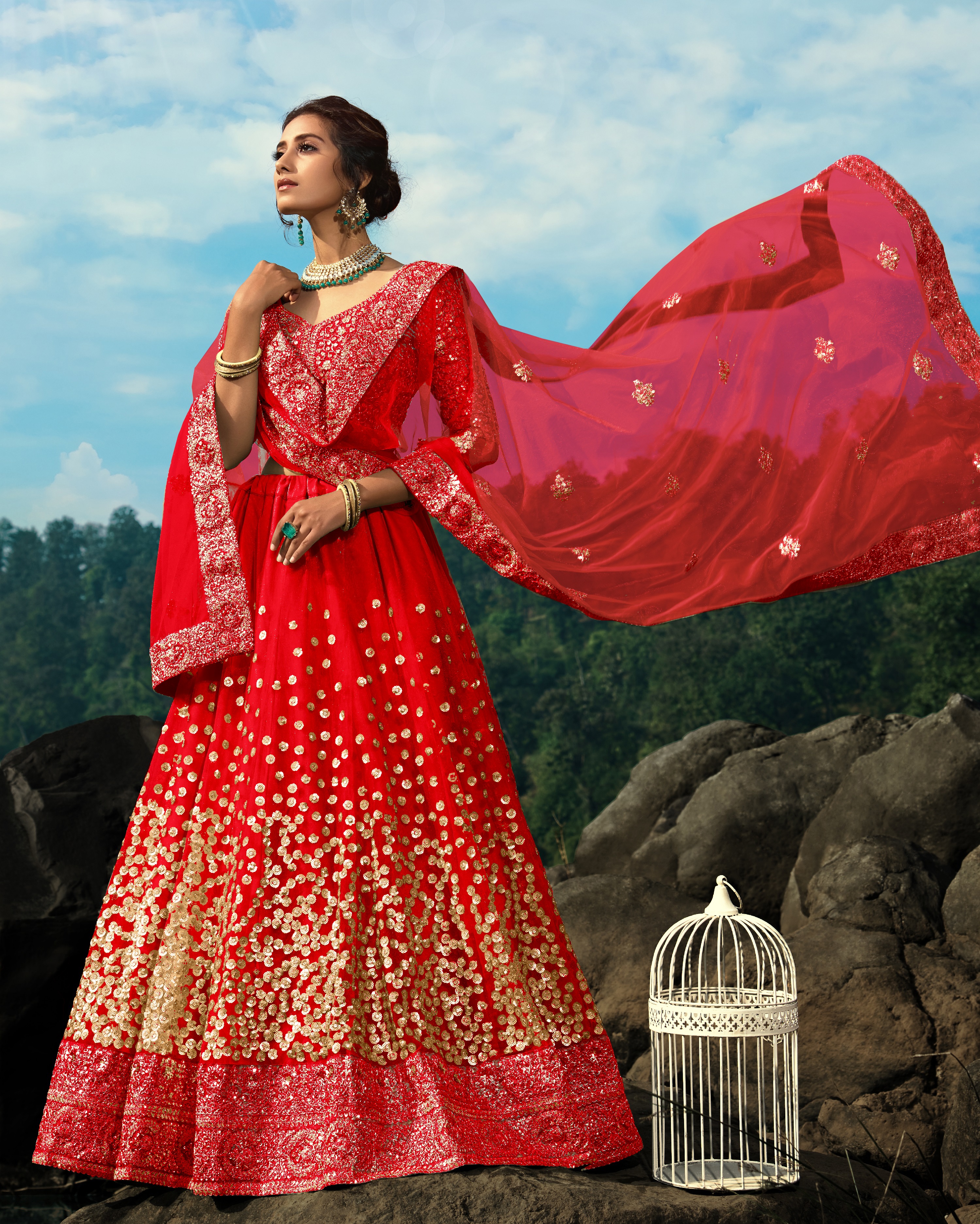 Elevate your ethnic look with this red net lehenga featuring sequience work work. Designed for festive occasions and celebrations, it offers a graceful flow and timeless appeal.Crafted from lightweight net fabric with a semi-stitched finish, this lehenga ensures comfort and easy customization. Dry clean recommended.