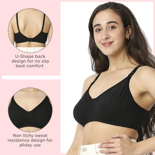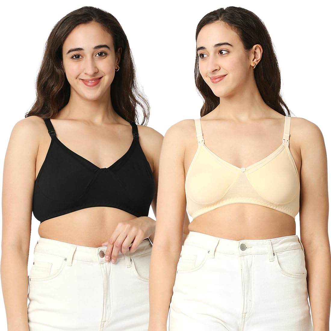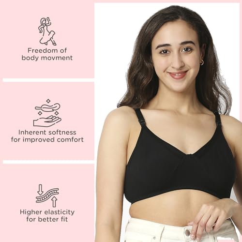 A feeding bra also known as a nursing bra is specially designed to provide comfort support and convenience for breastfeeding mothers. Unlike regular bras it features easy-access panels or cups that can be unclipped or pulled down to allow for quick and discreet breastfeeding or pumping. These bras are essential for new mothers as they make the process of breastfeeding smoother and more comfortable both at home and on the go. Made of 100% cotton with extra-soft elastic for ease of wear Front clasp with drop clip to breastfeed quickly. Non-wired for utmost comfort Equipped with thicker straps broader sides and a deeper center front for complete support Non-wired for utmost comfort Ergonomically designed fabric to aid in breastfeeding. Machine washable. Available in ALL sizes - 34 36 38 149 and cup sizes - B C D and neutral colors to suit your preferences.