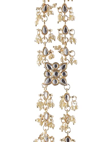 Priyaasi White Floral Kundan Pearl Dual-Layered Gold-ColorMathapatti