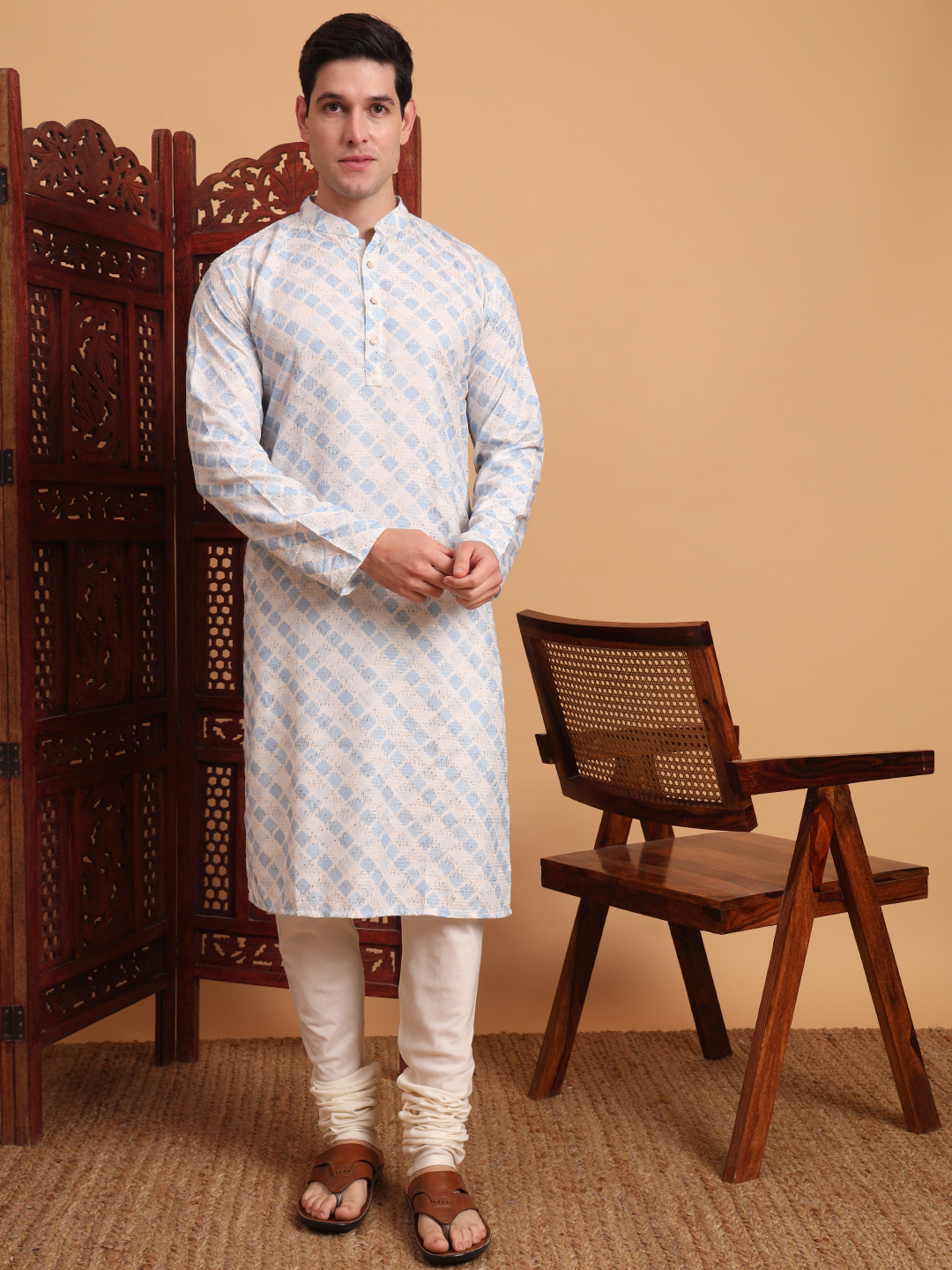 Beautiful Blue Color Smart Printed Men's Festive Wear Kurta
