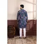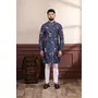 Blue Color Ethnic Woven Patta With Digital Printed Ceremonial Kurta Payjama For Men's