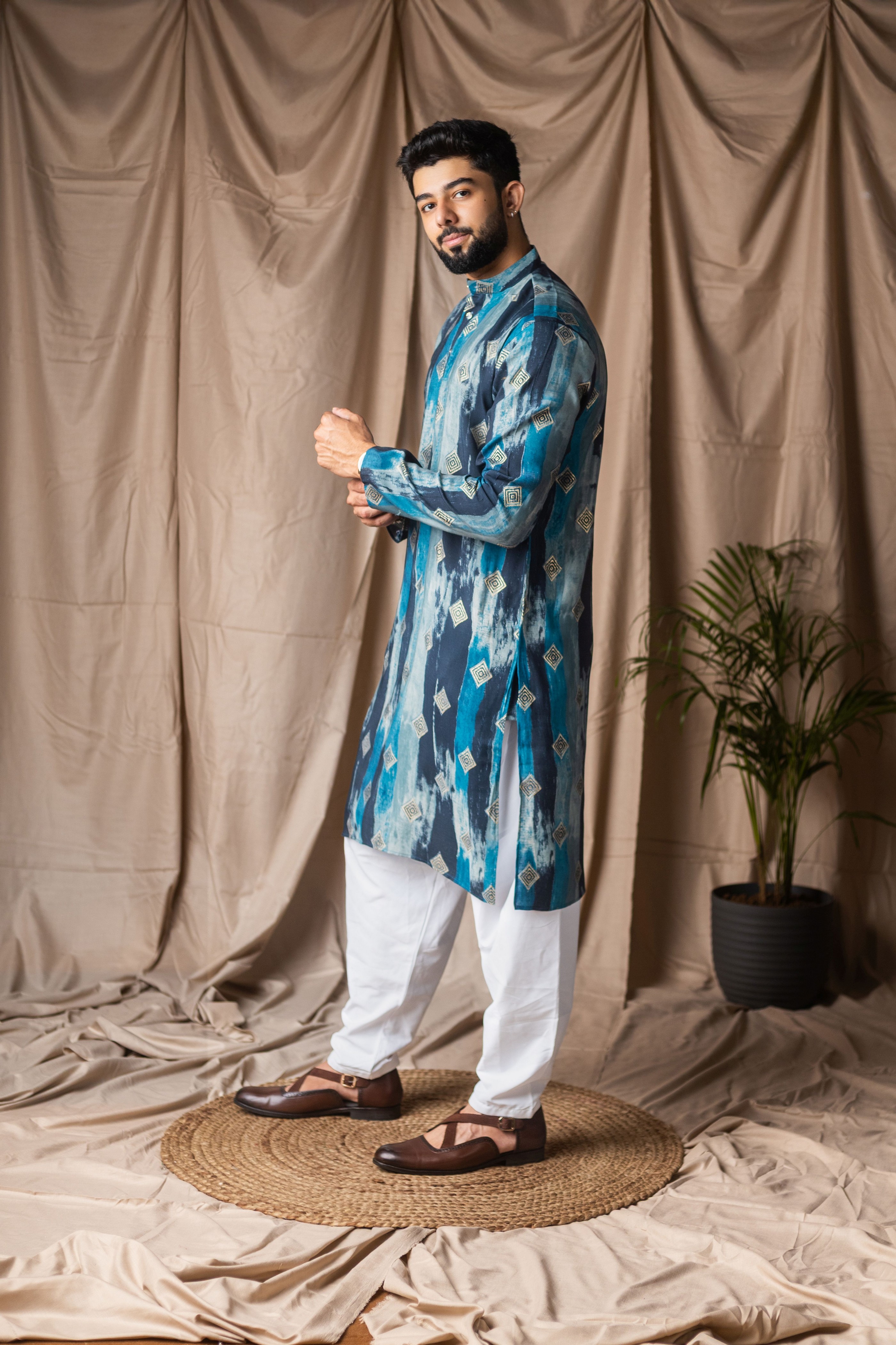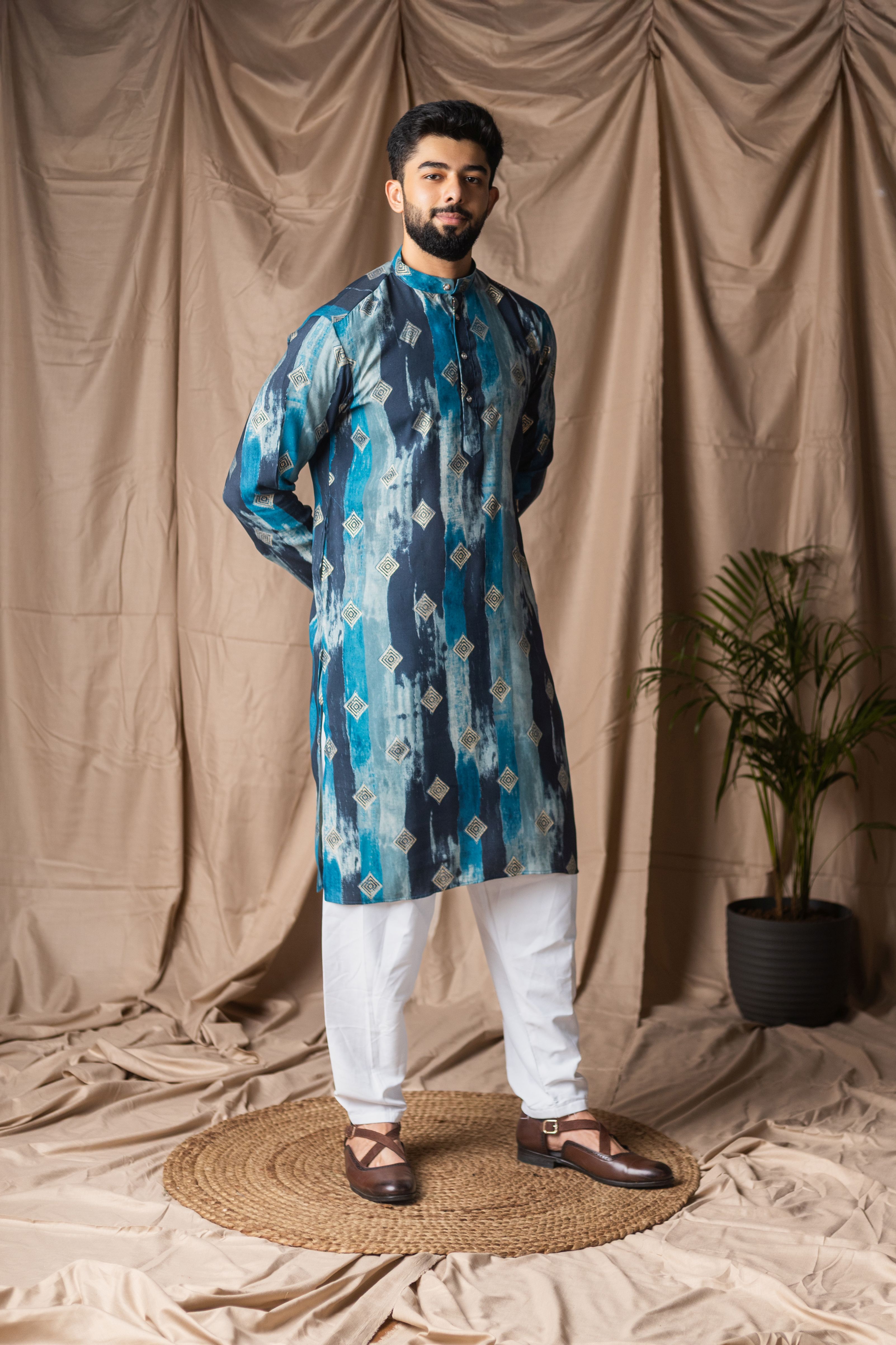 Blue Color Modal Silk Fabric Designer Printed Festive Wear Men's Kurta Payjama