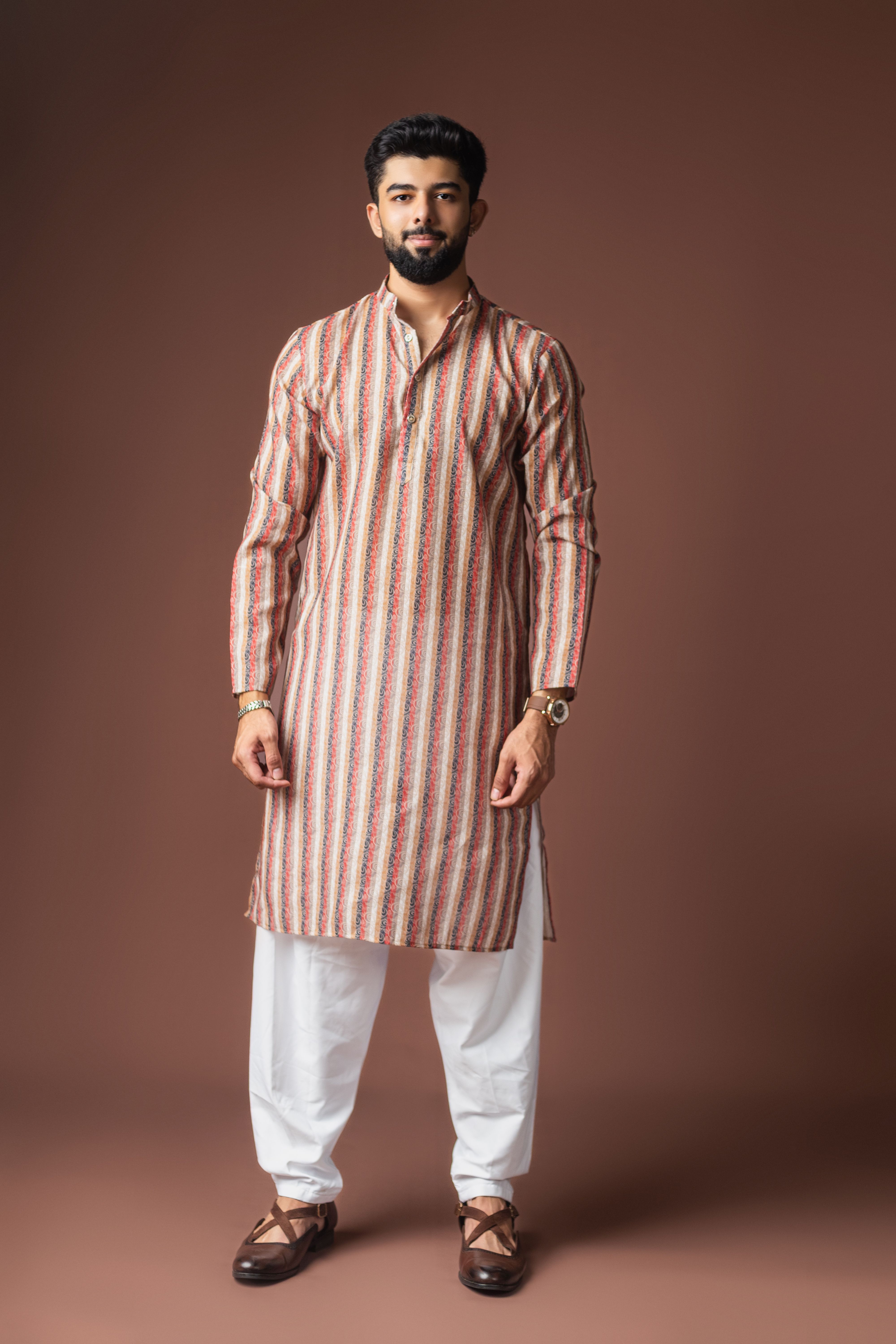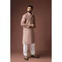 Cream Color Blended Linen Designer Printed Stylish Kurta Payjama For Mens'