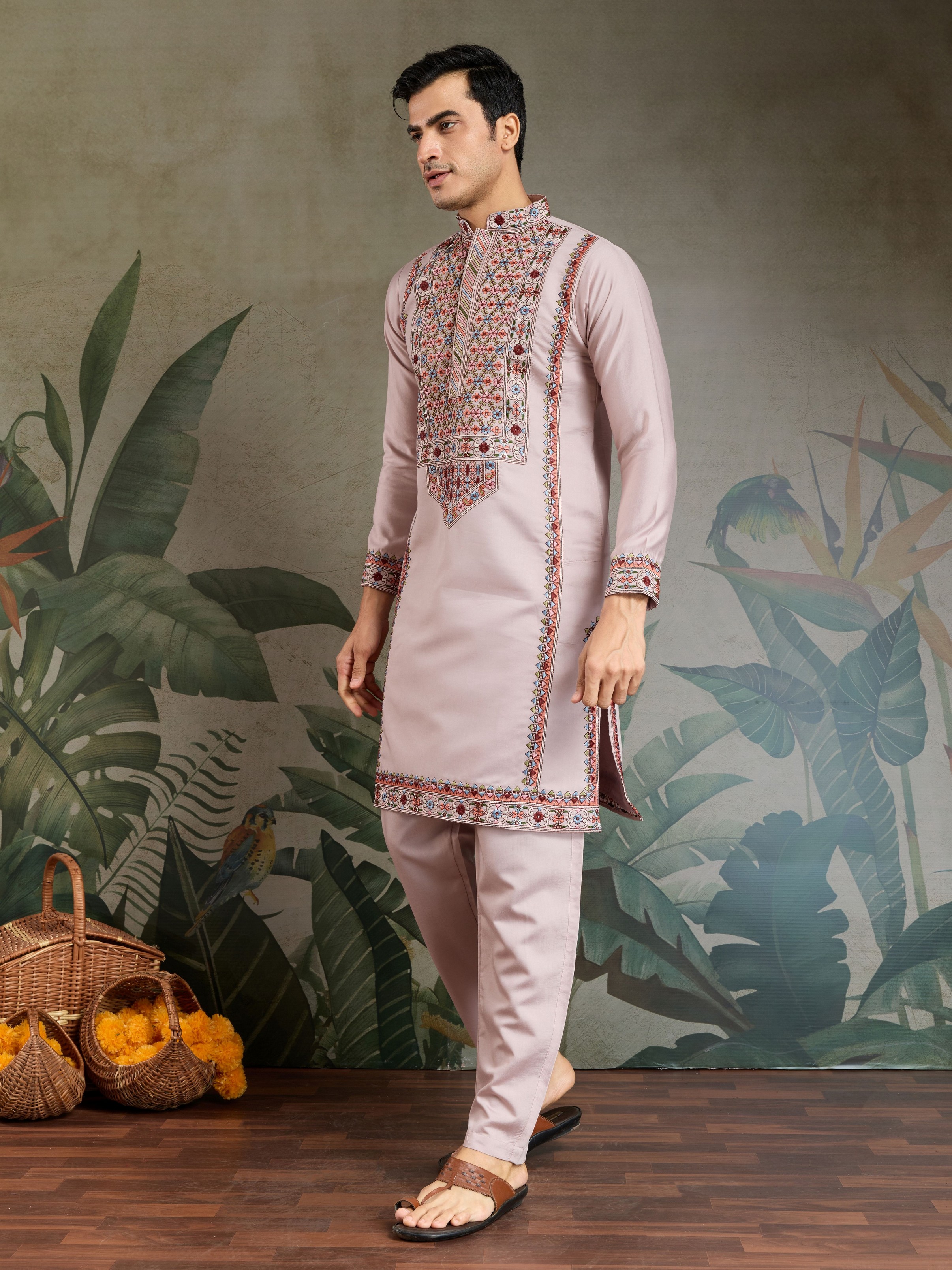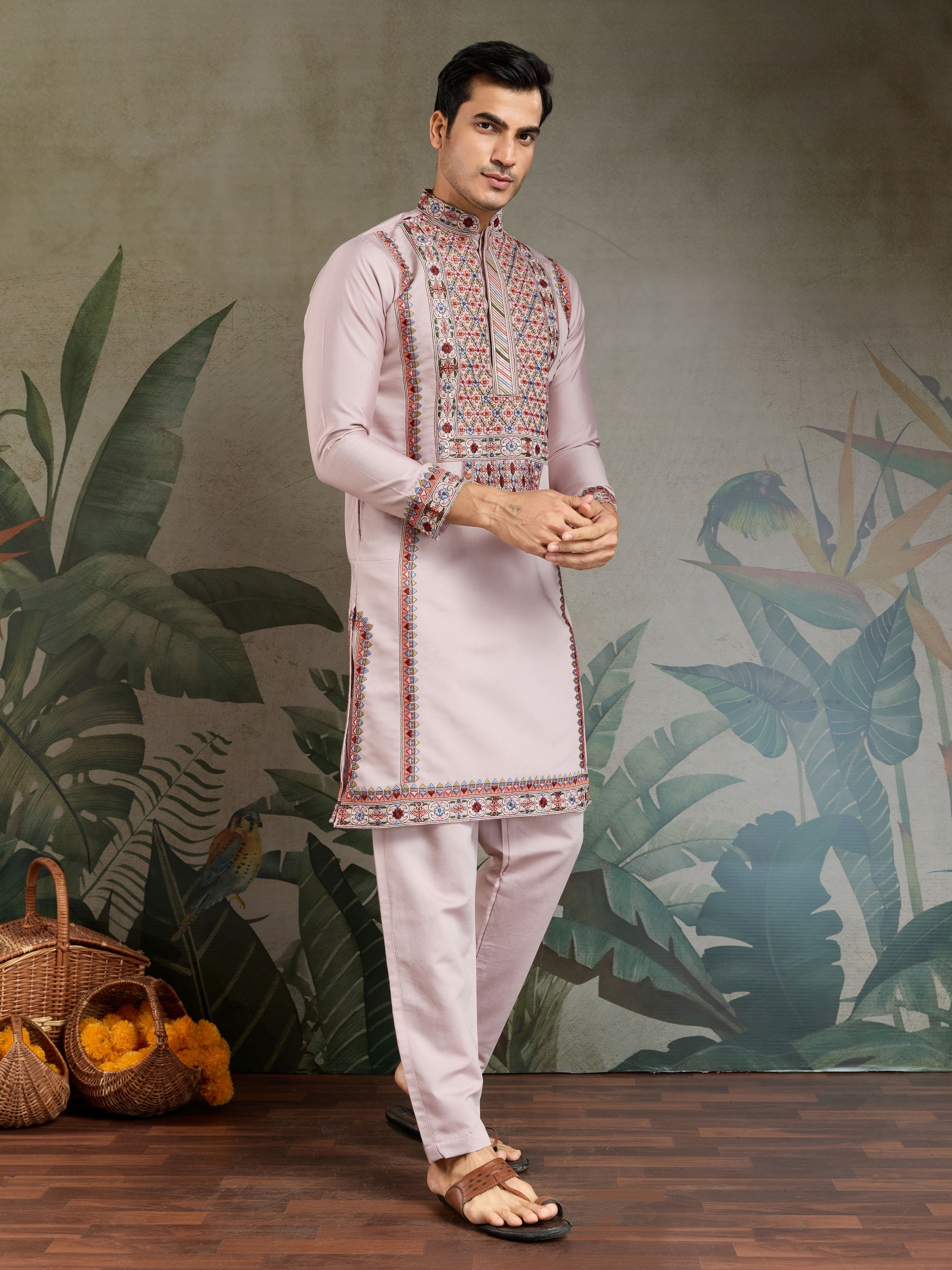 Dusty Pink Color Viscose Silk Fabric Designer Embroidered Kurta For Mens