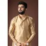 Golden Color Jacquard Designer Ethnic Men's Kurta Payjama For Festive Looks