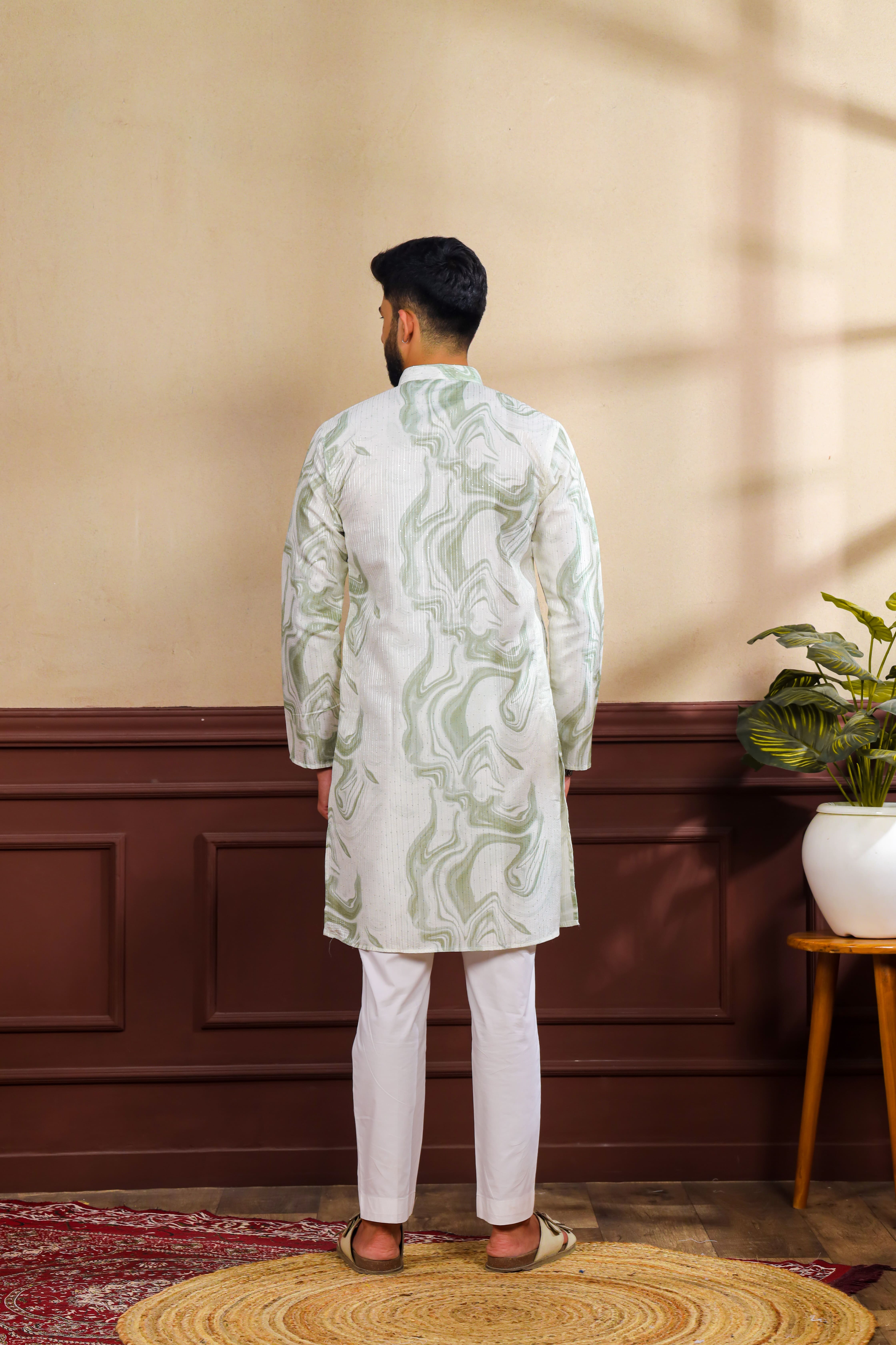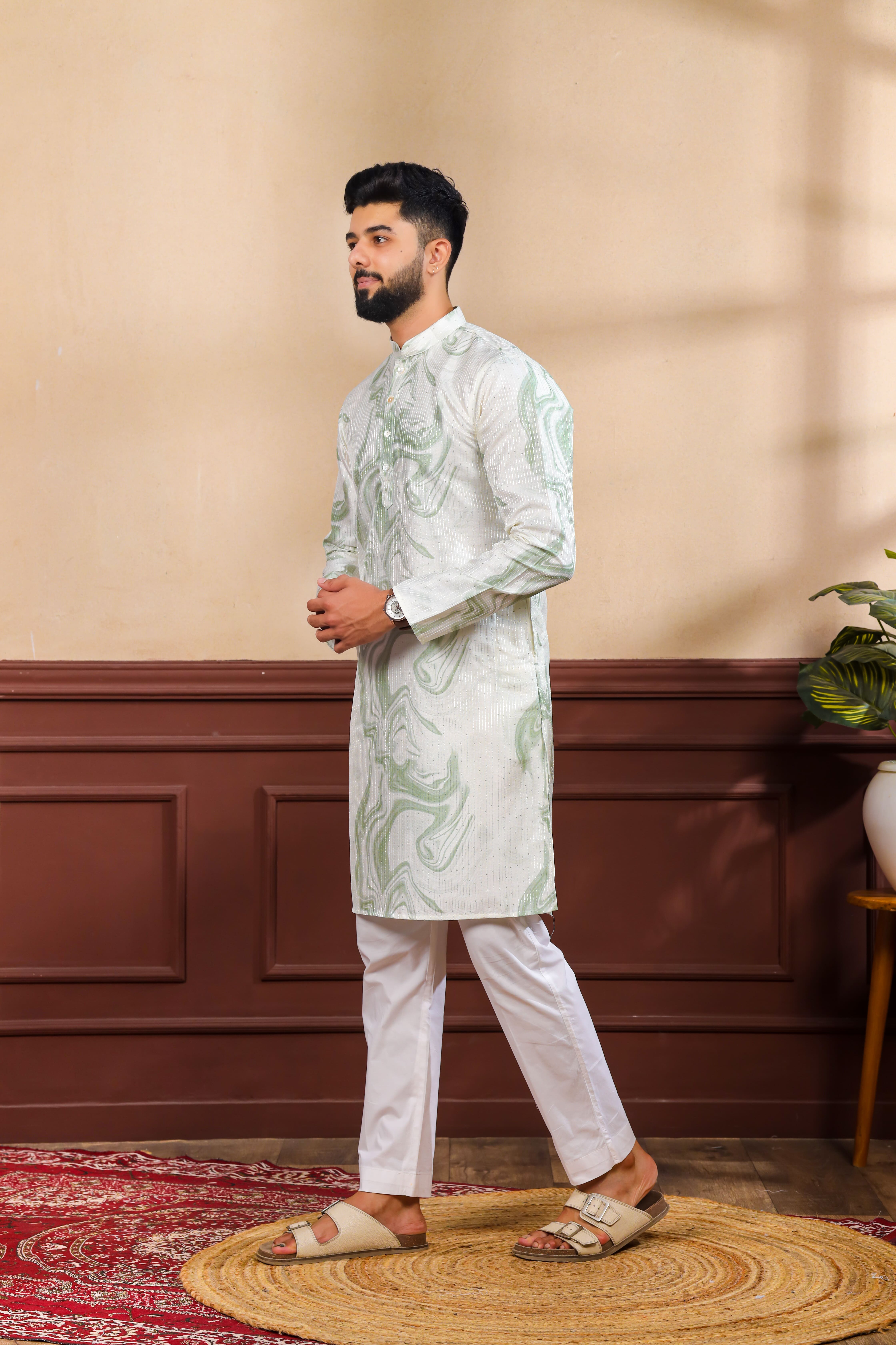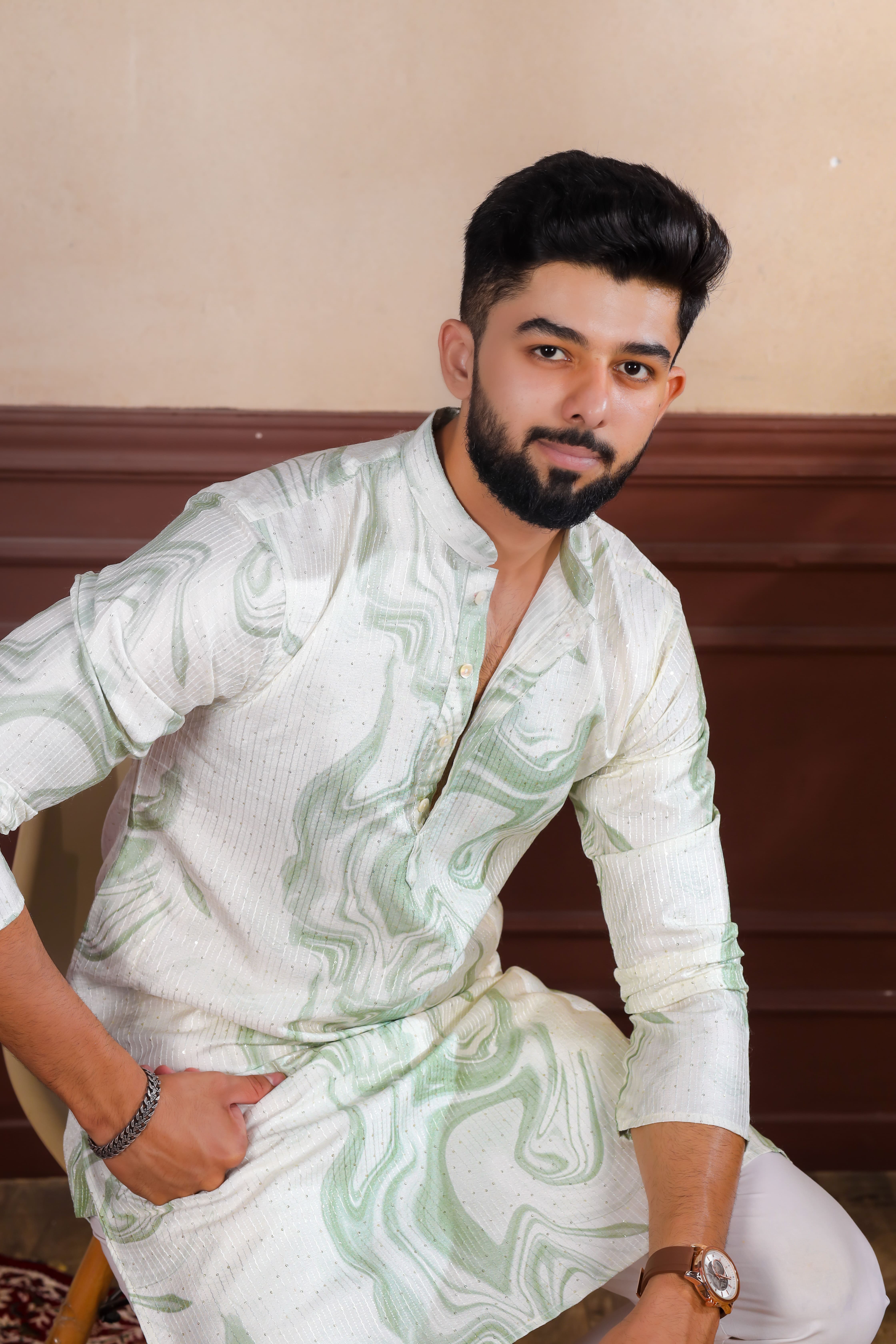 Green Color Beautiful Art Silk Fabric Smart Print Designer Kurta Payjama
