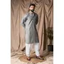 Grey Color Rayon Fabric Festive Wear Ethnic Men's Embroidered Kurta Payjama