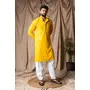 Light Yellow Color Beautiful Thread Embroidery Work Rayon Fabric Ceremonial Men's Kurta Payjama