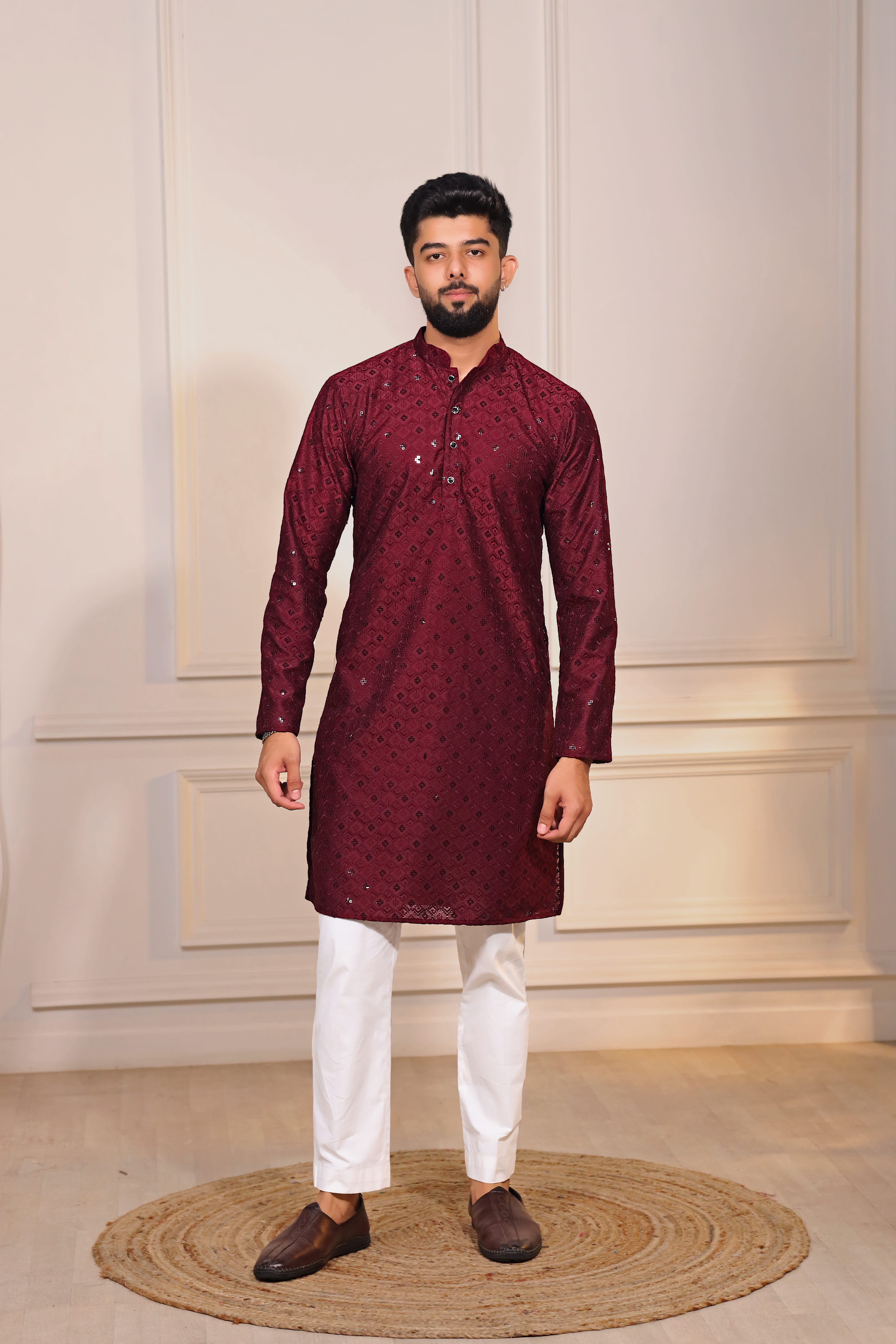 Maroon Color Designer Embroidery Work Ceremonial Ethnic Kurta Payjama For Men's