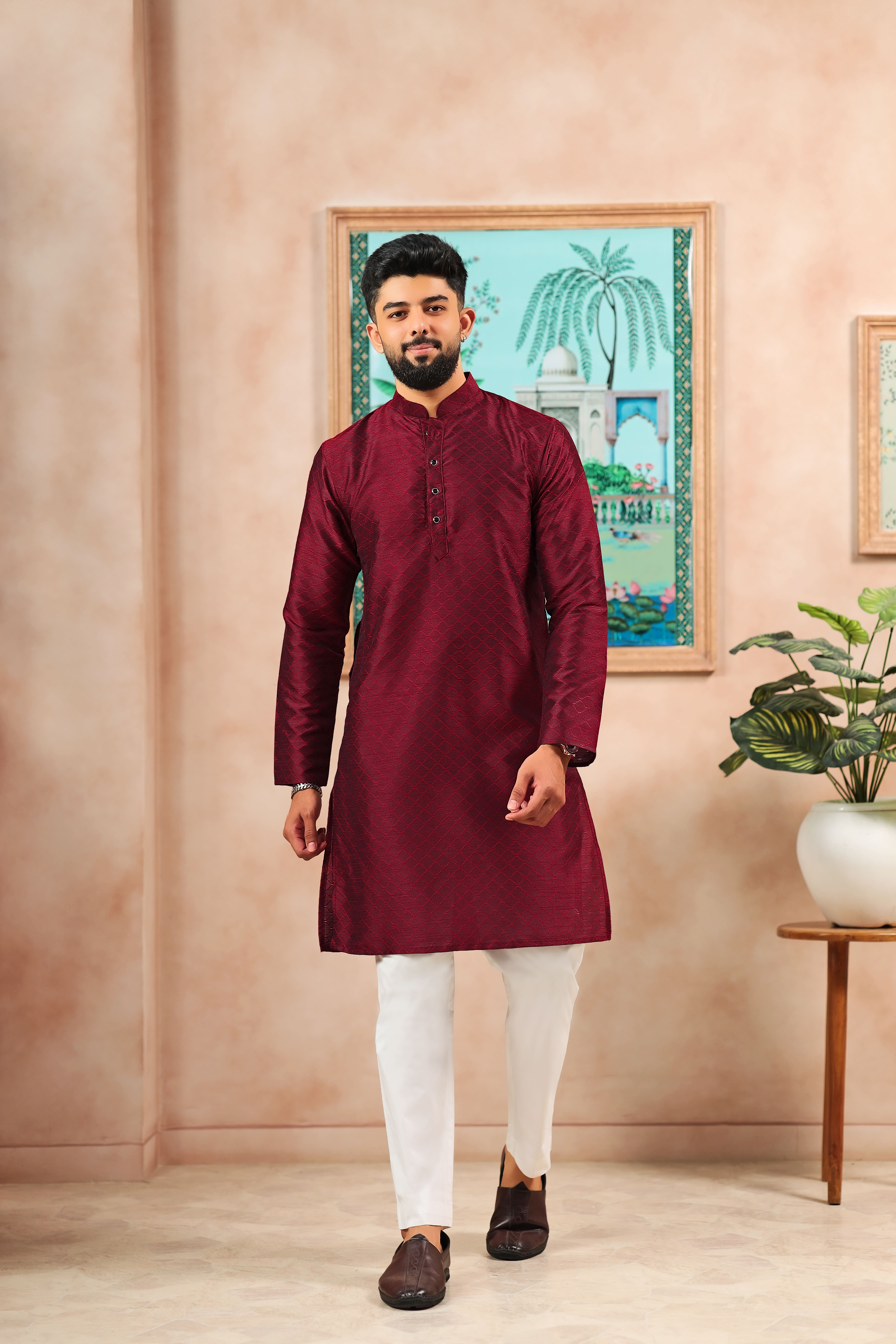 Maroon Color Graceful Partywear Kurta Payjama For Mens Ceremonial Looks