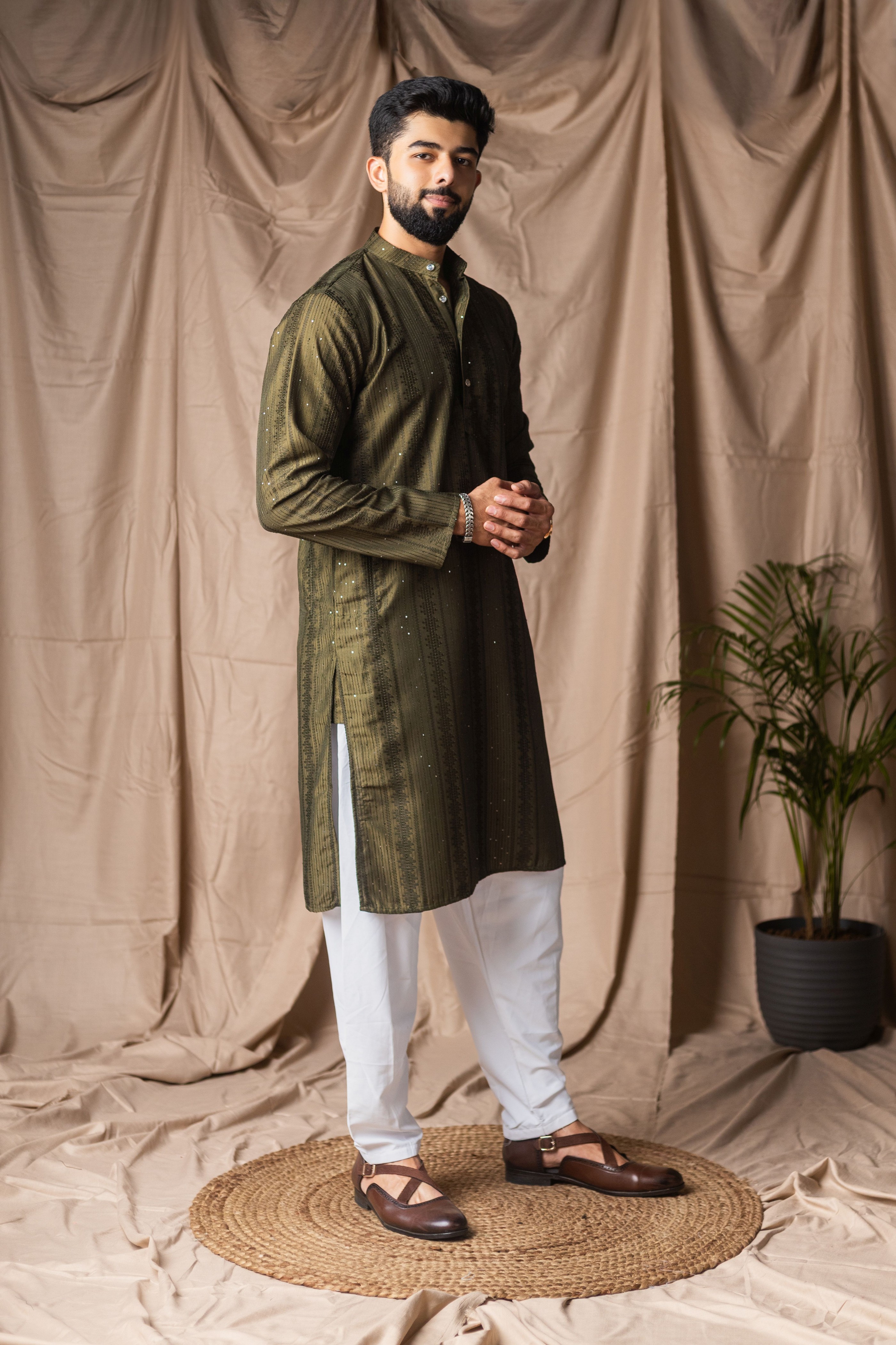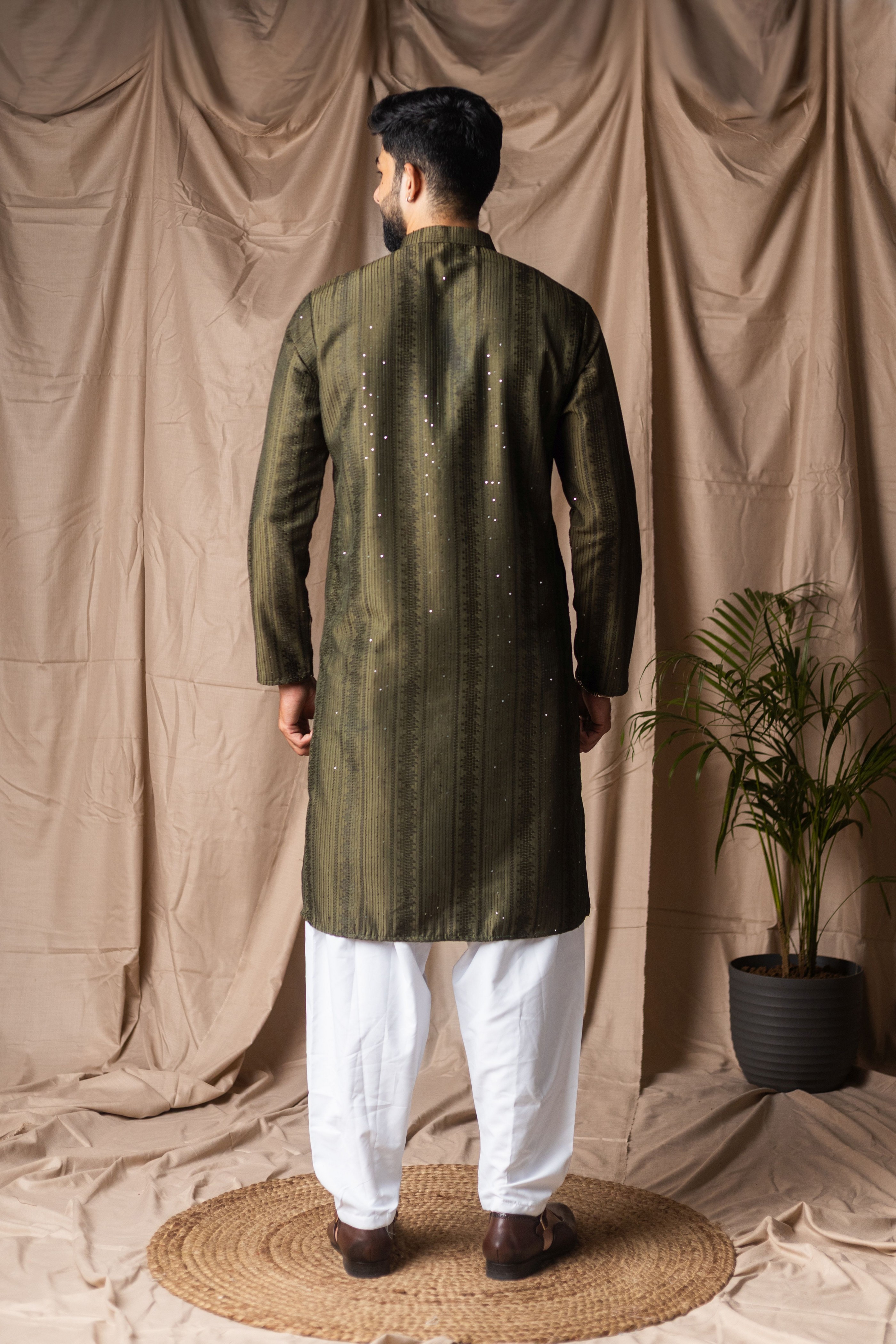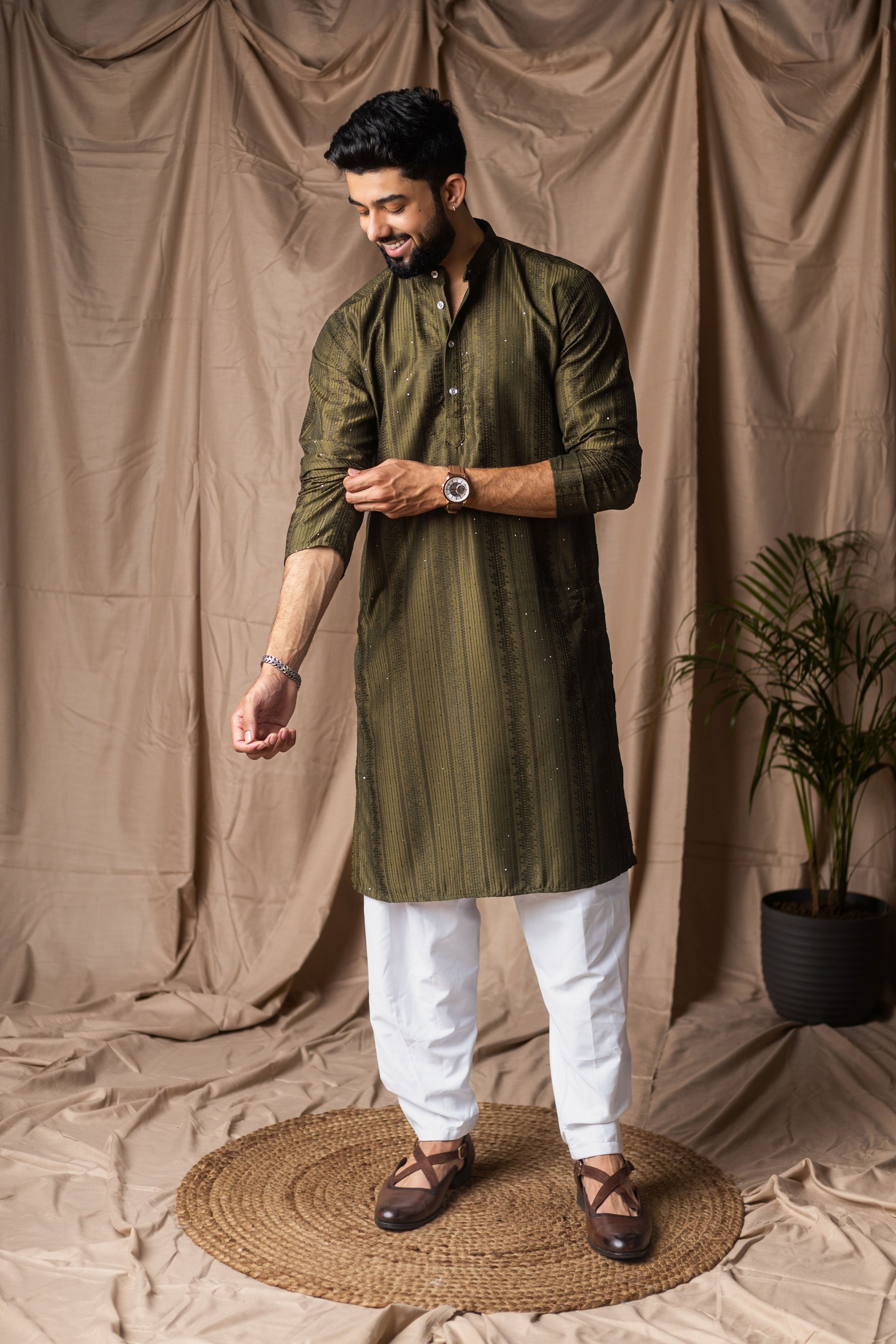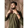 Mehandi Green Color Beautiful Thread Embroidery Work Rayon Fabric Ceremonial Men's Kurta Payjama