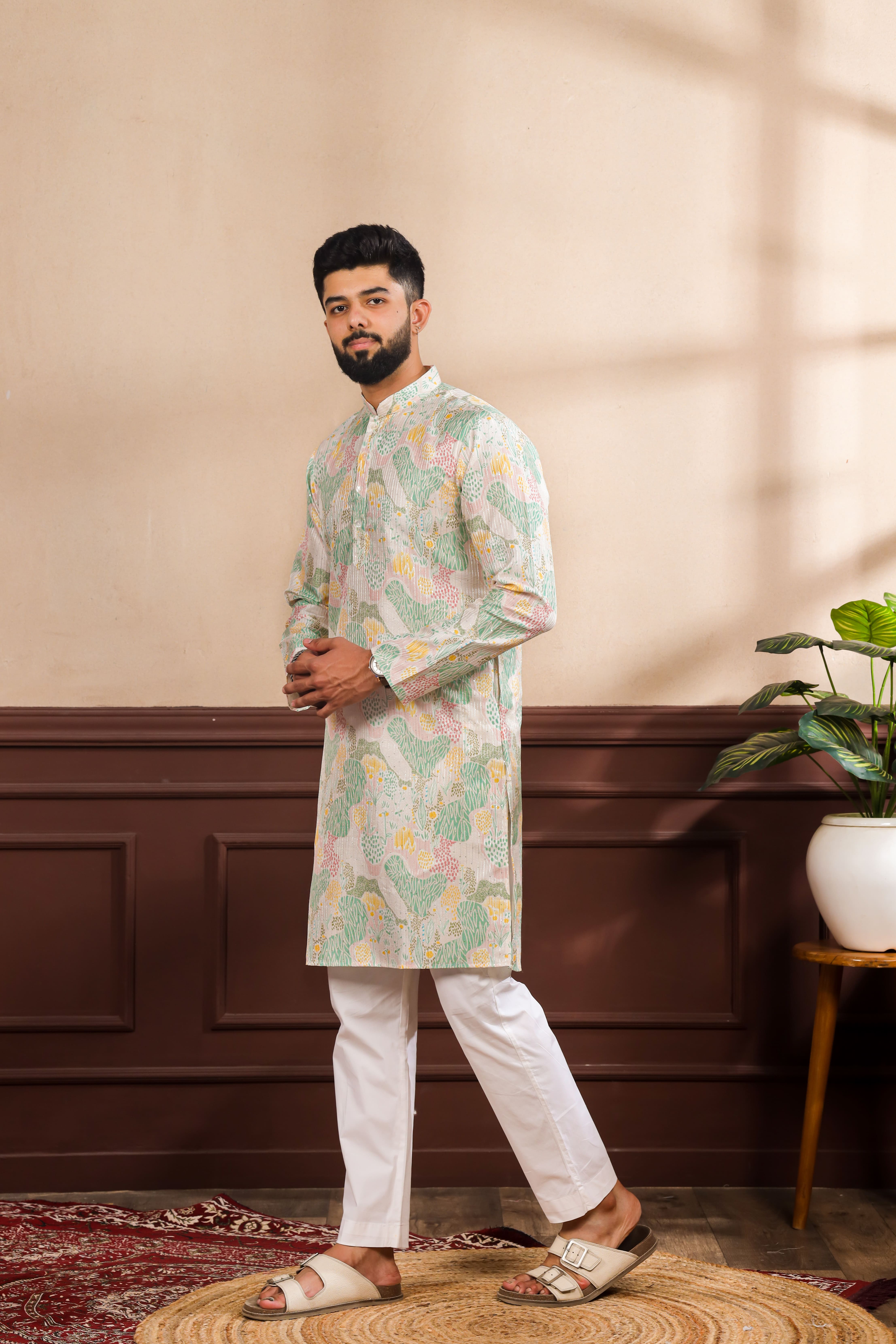 Multy Color Beautiful Art Silk Fabric Smart Print Designer Kurta Payjama