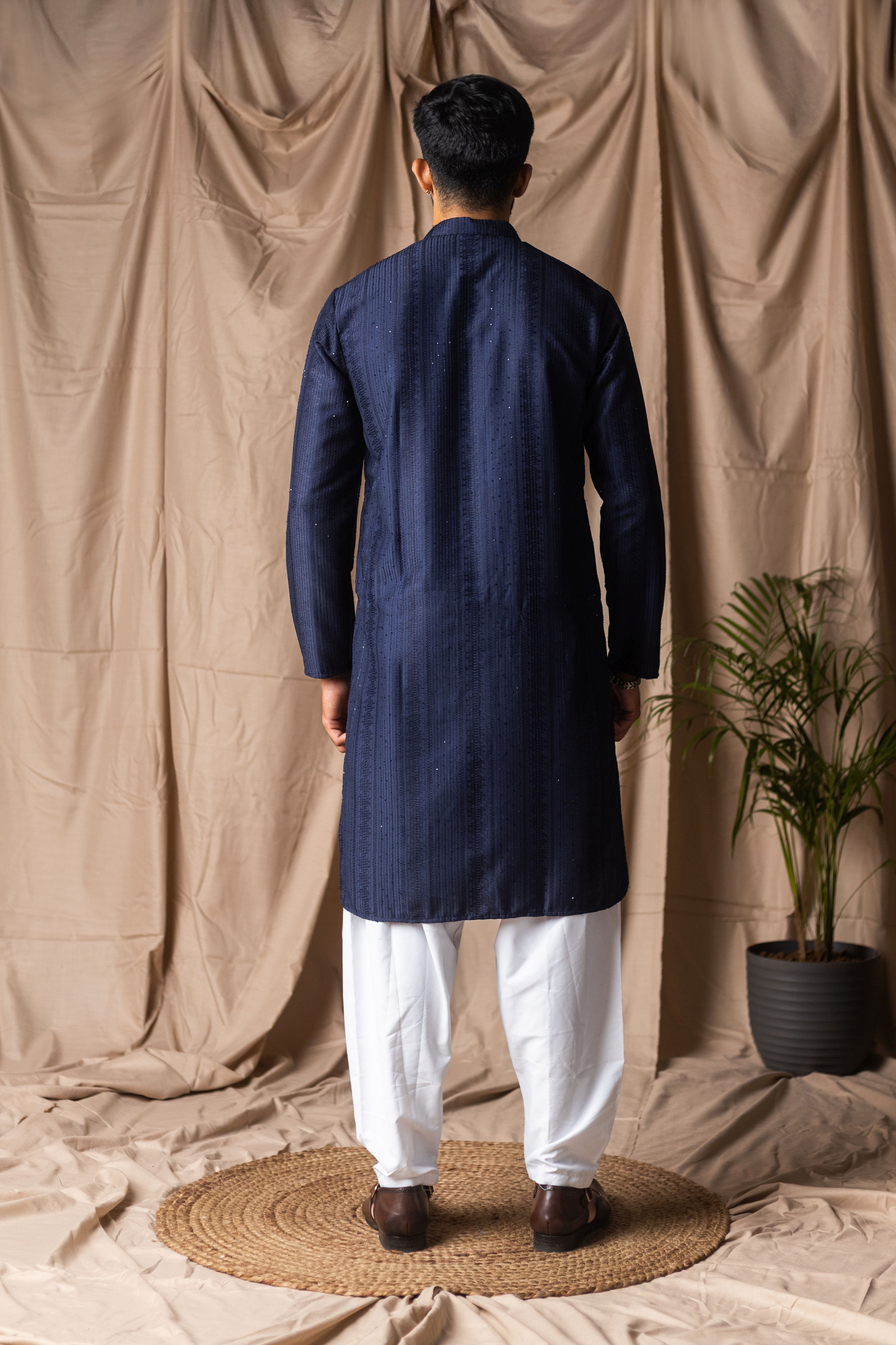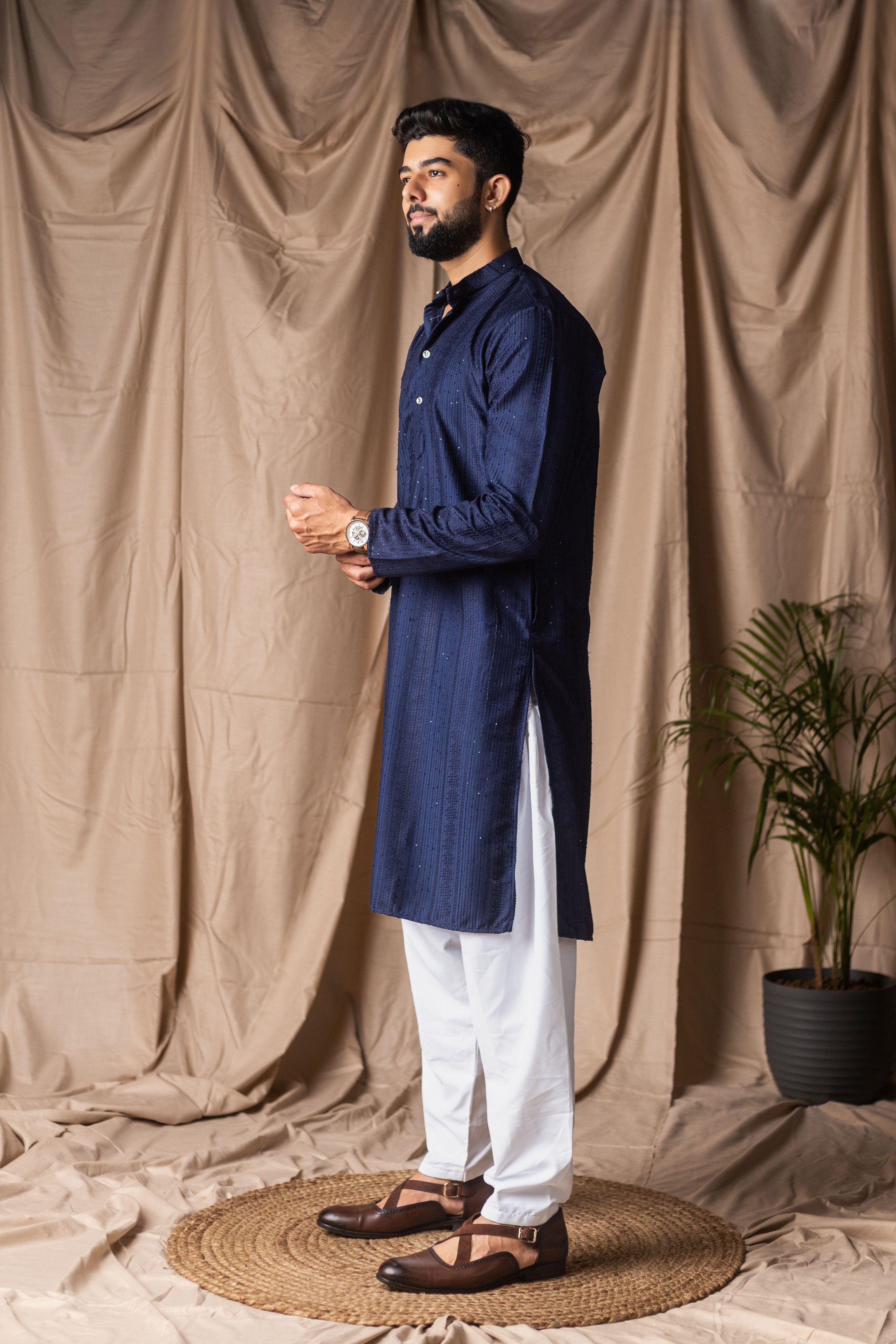 Navy Blue Color Rayon Fabric Festive Wear Ethnic Men's Embroidered Kurta Payjama