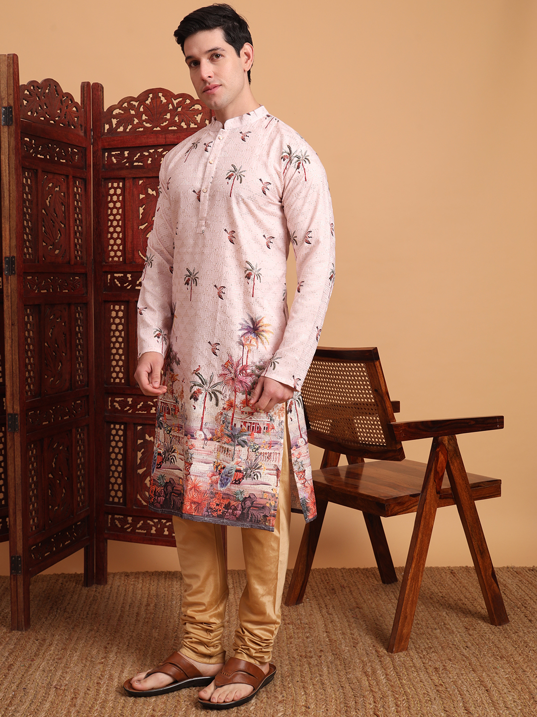 Peach Color Beautiful Men's Traditional Kurta For Ceremonial Looks