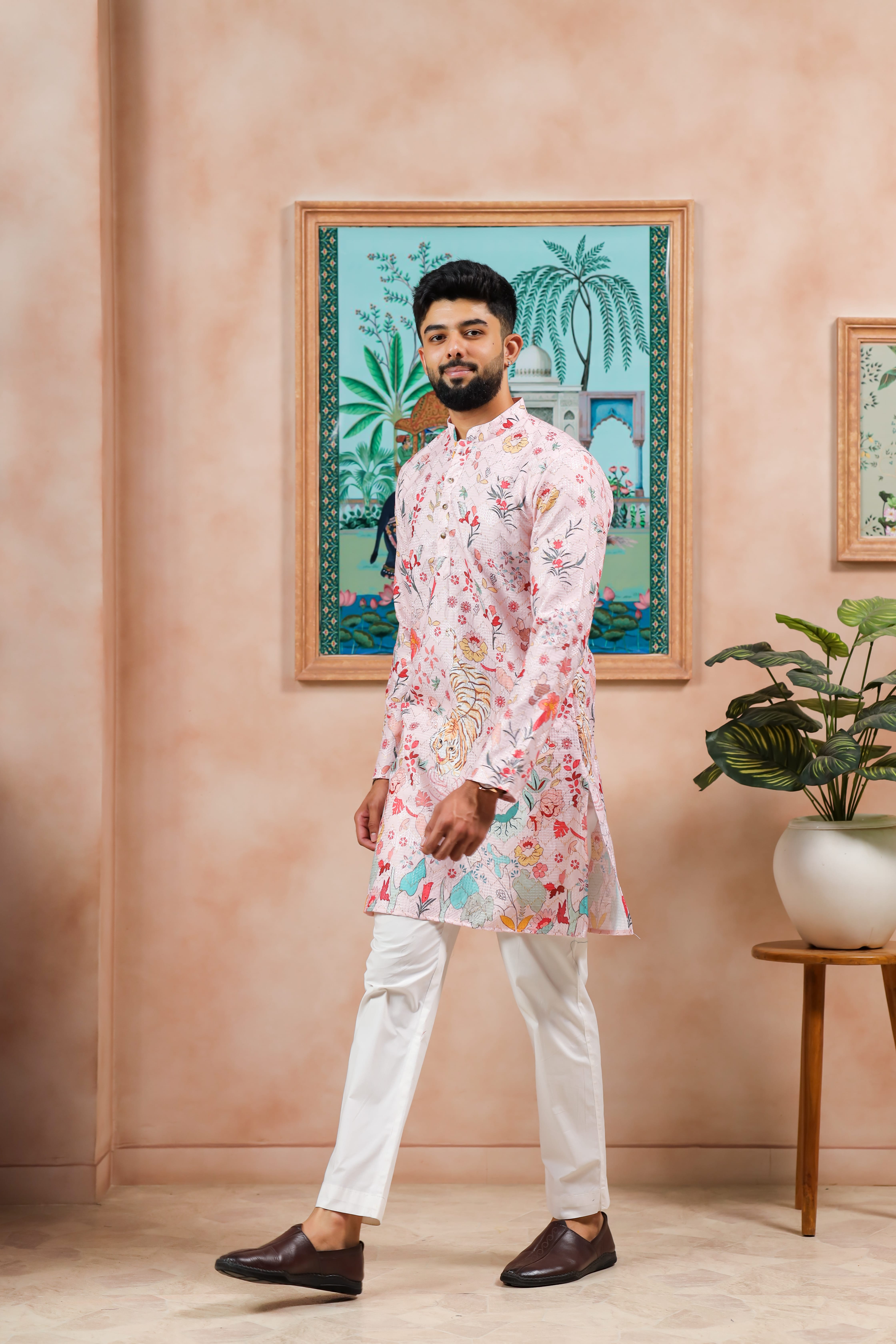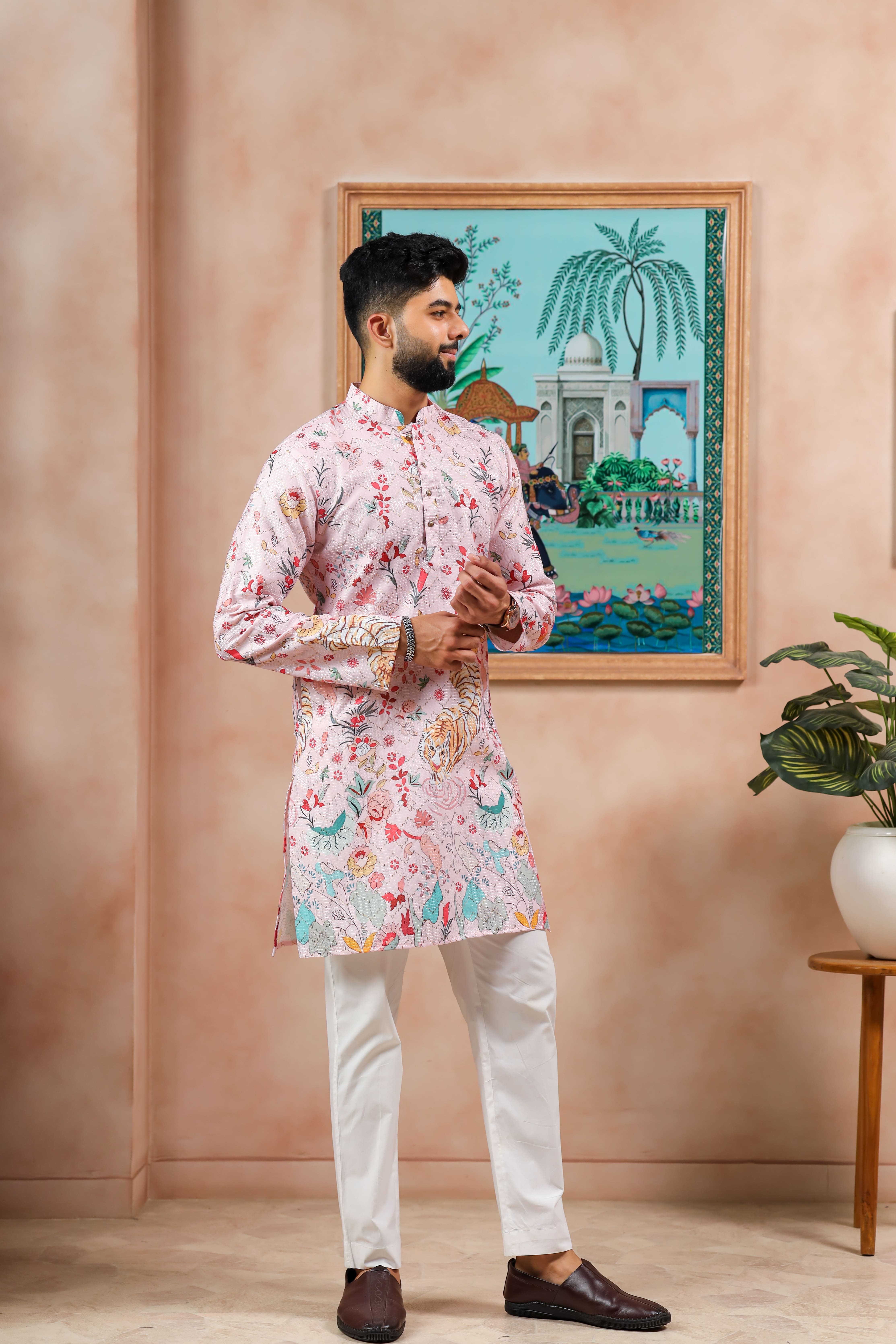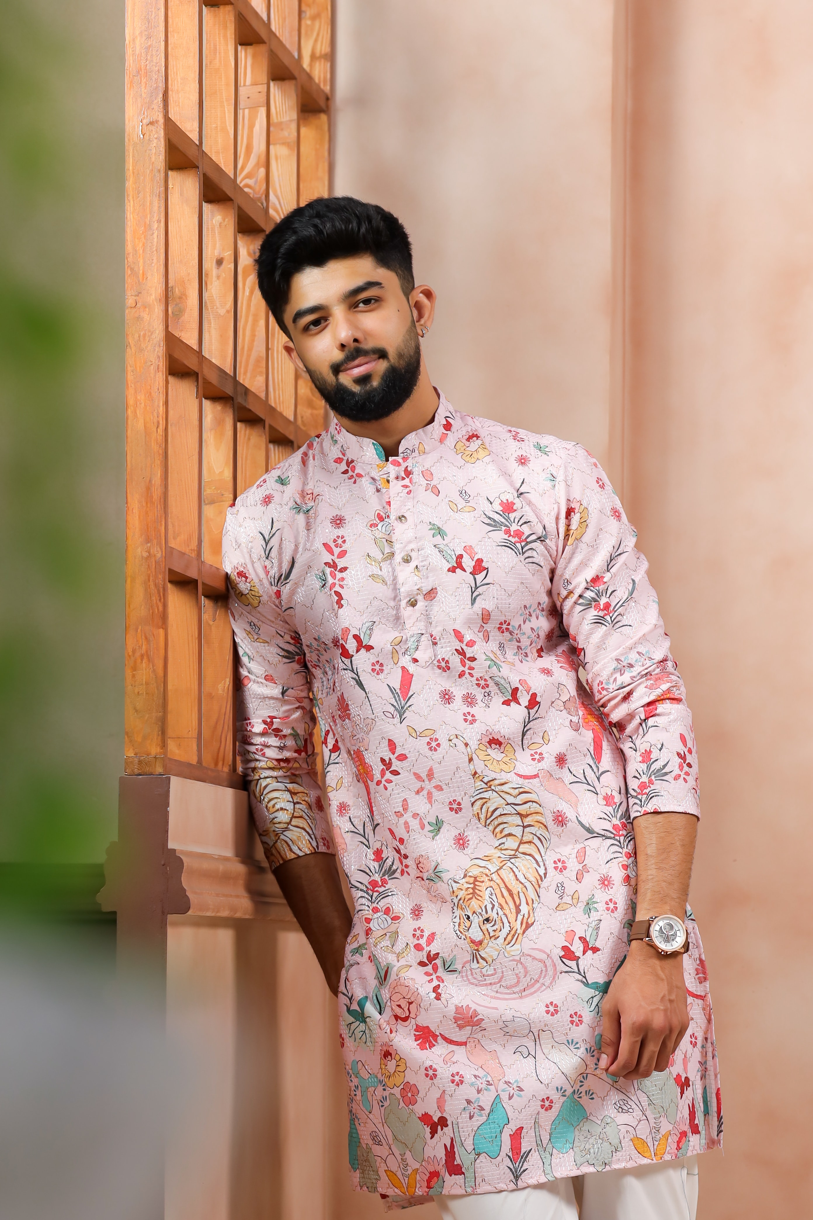 Pink Color Beautiful Blended Cotton Fabric Ceremonial Kurta Pjyama