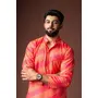 Pink Color Blended Linen Fabric Designer Printed Festive Wear Men's Kurta Payjama