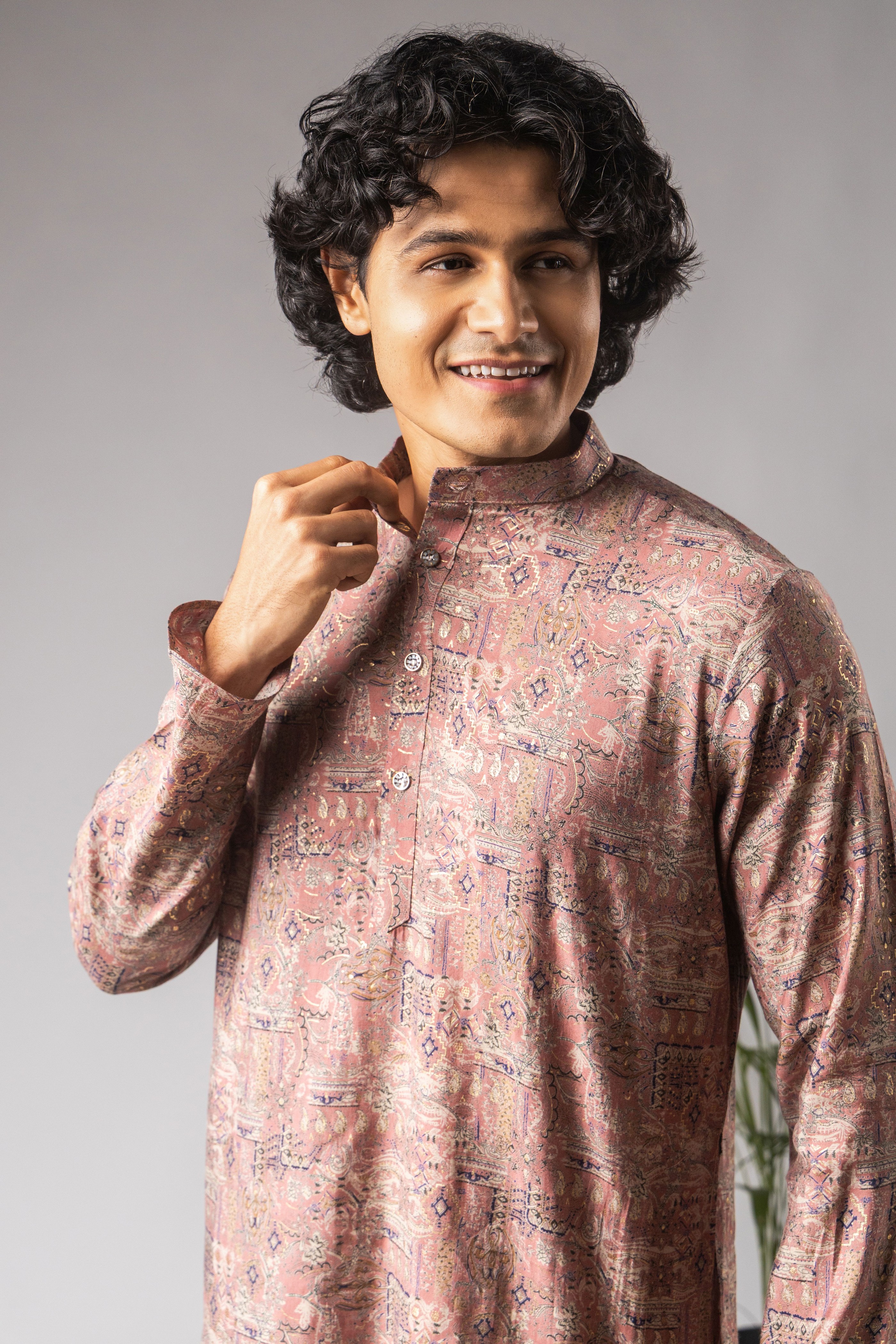 Pink Color Modal Silk Fabric Designer Ceremonial Kurta Payjama For Men's