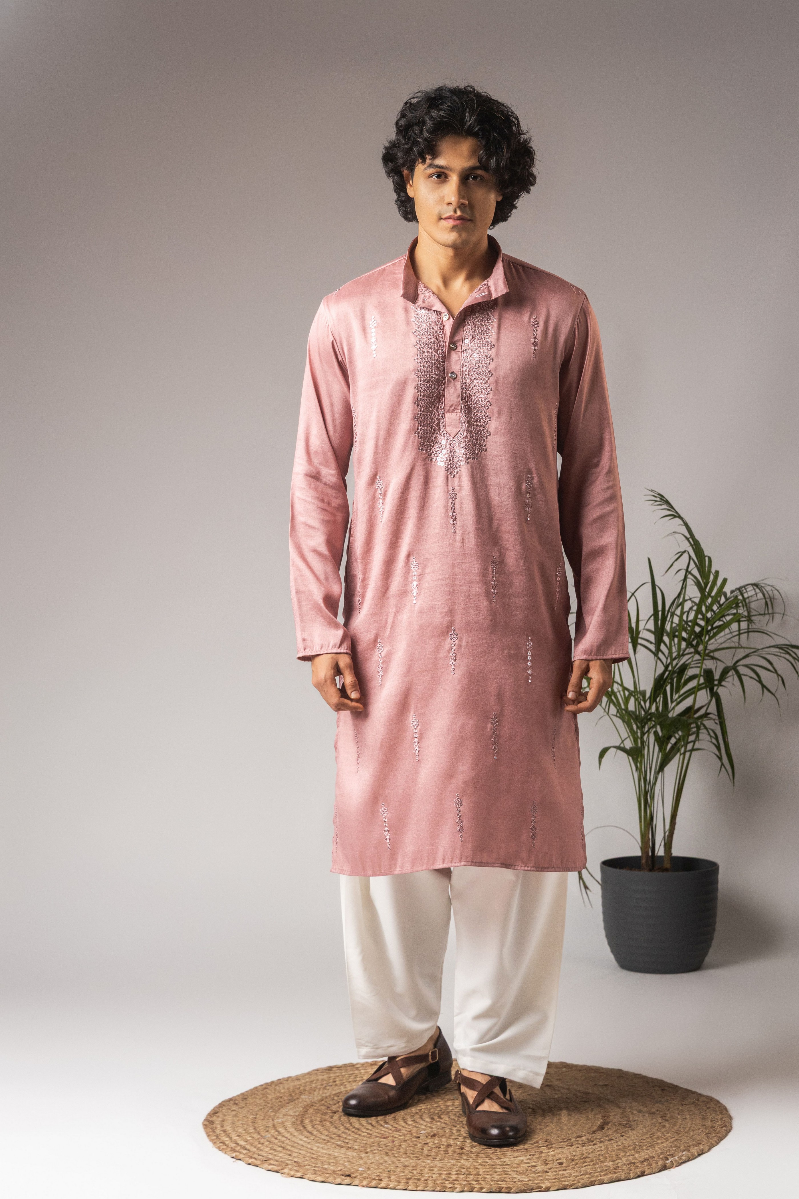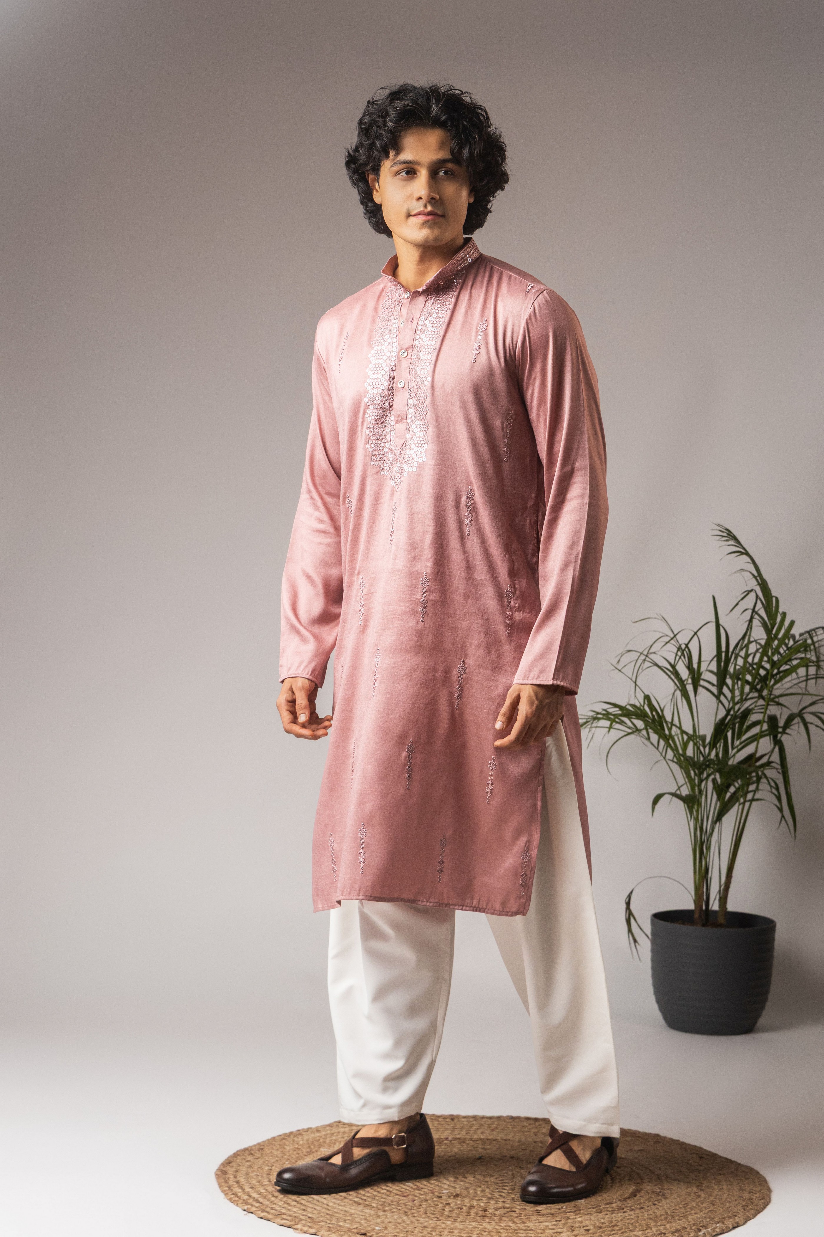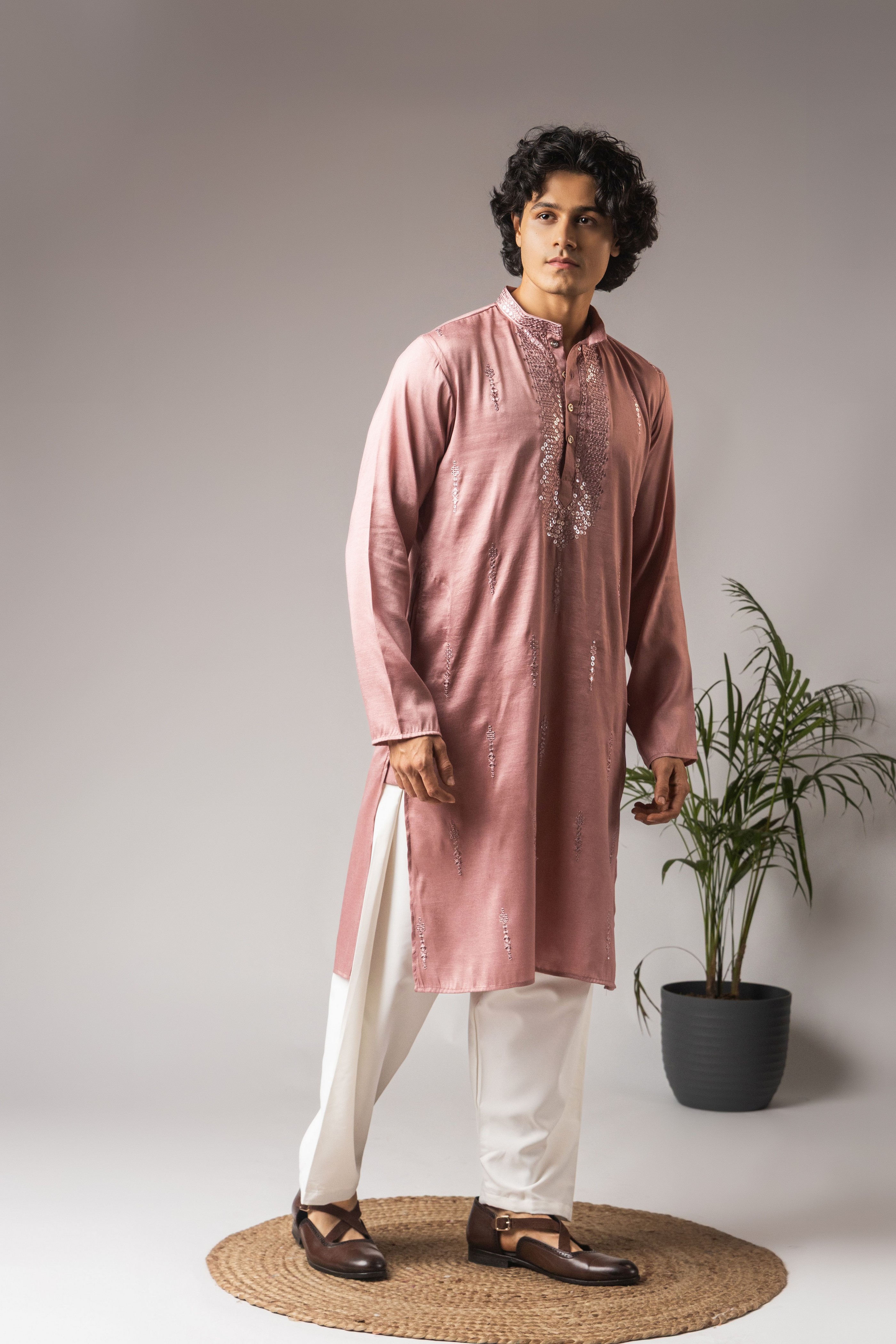 Pink Color Super SIlk Fabric Designer Ceremonial Kurta Payjama For Men's
