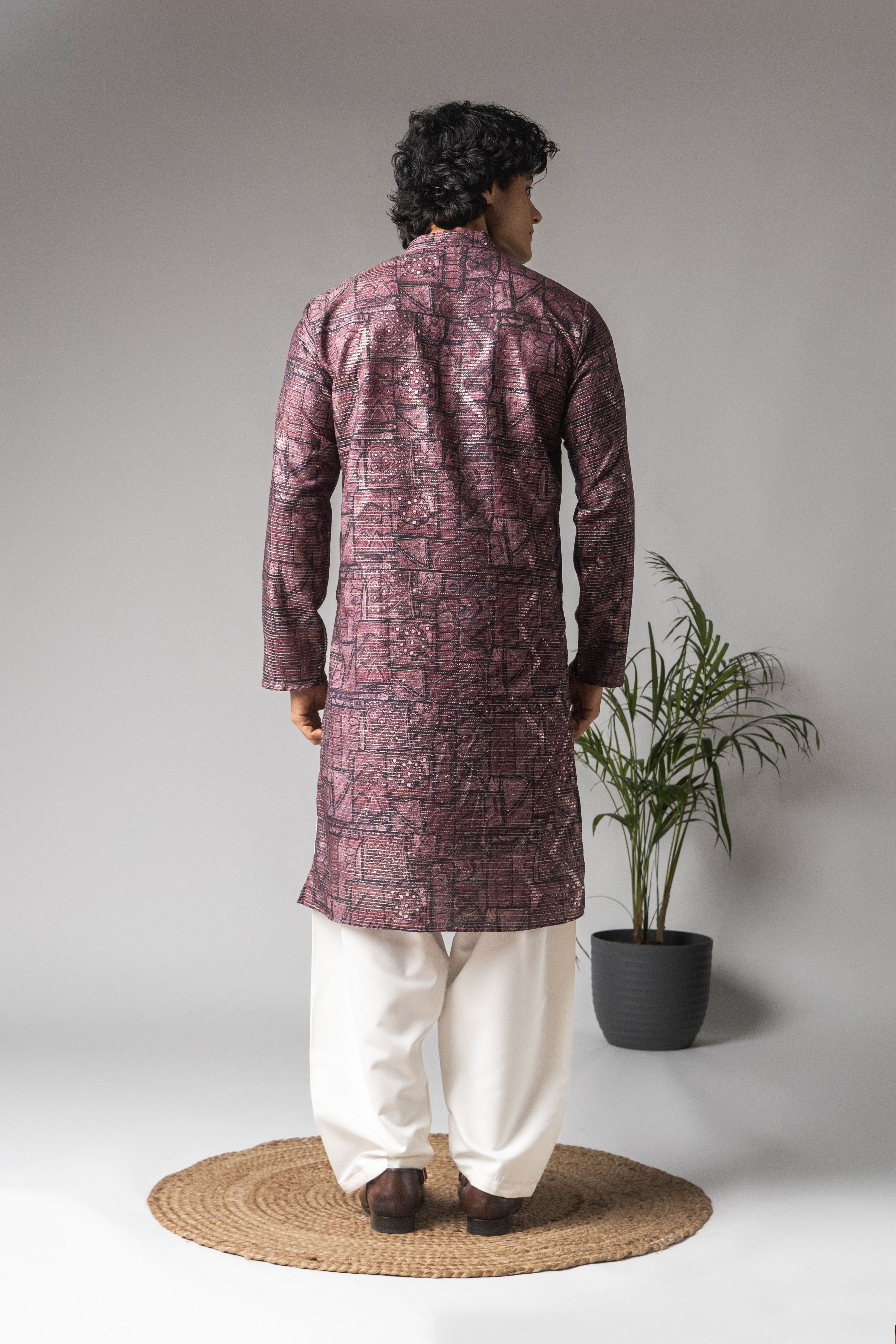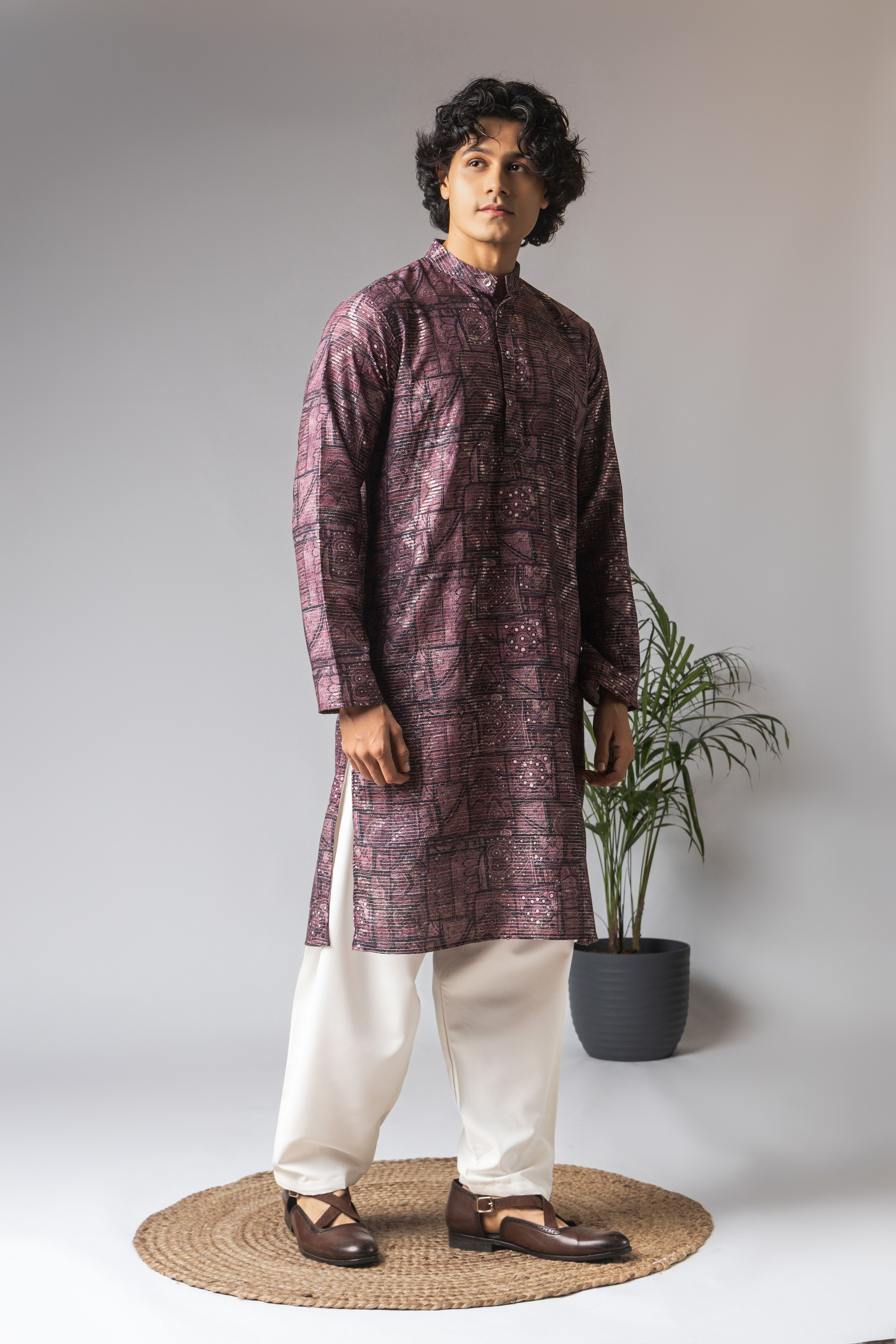 Purple Color Viscose Fabric Designer Ceremonial Kurta Payjama For Men's