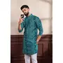 Rama Color Ethnic Woven Patta With Digital Printed Ceremonial Kurta Payjama For Men's