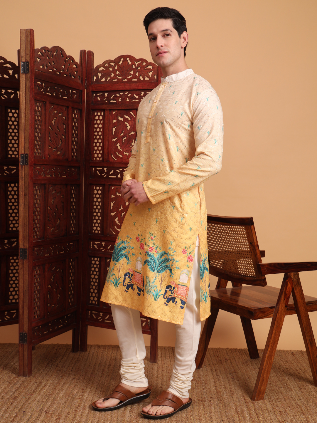 Yellow Color Beautiful Men's Traditional Kurta For Ceremonial Looks