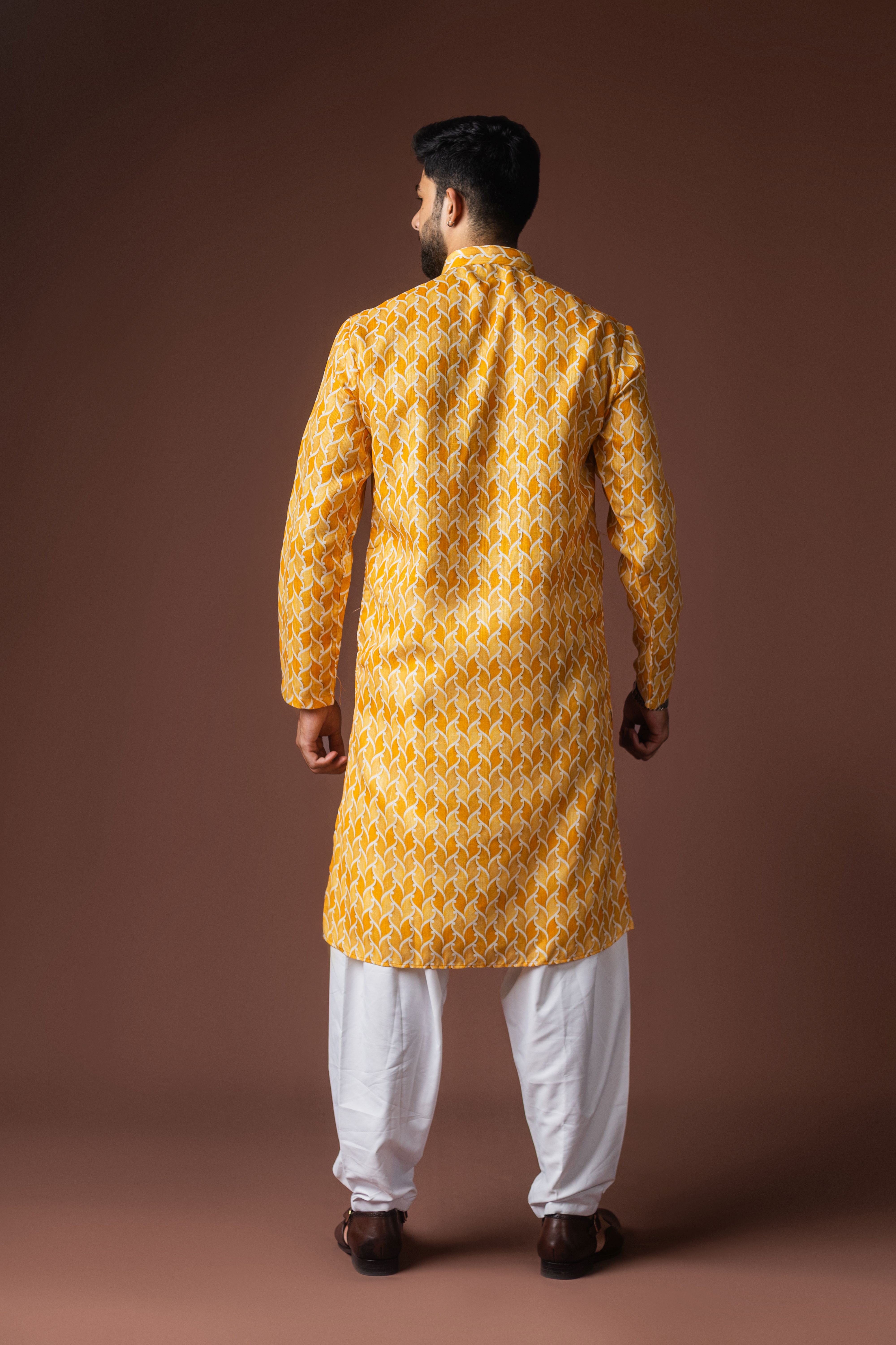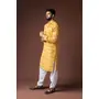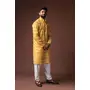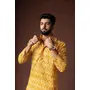 Yellow Color Blended Linen Fabric Designer Printed Festive Wear Men's Kurta Payjama