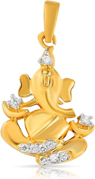 Mahi Collection Gold Plated CZ Stones Ganpati Pendant For Men And Women - PS1101375G