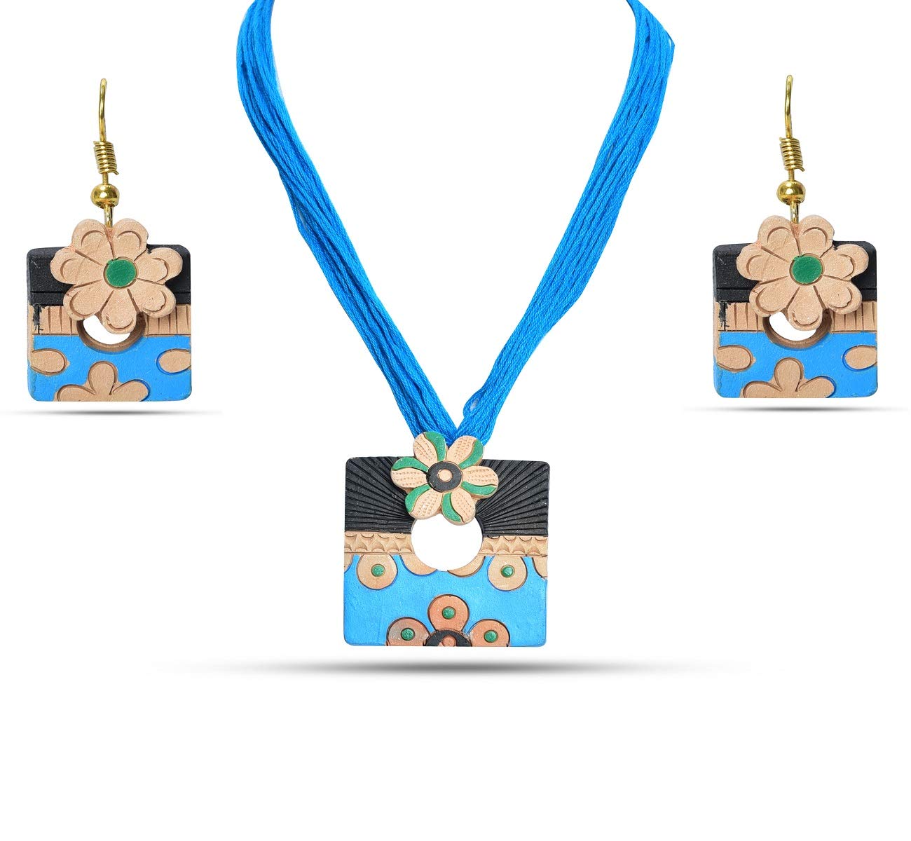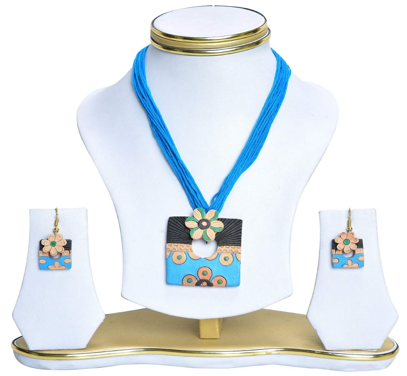 The product in display is made from terracotta material and is finished in an attractive Blue color. Furthermore this product features a strand shape and a design that renders it with the versatility to be worn as a festive occasion wear.