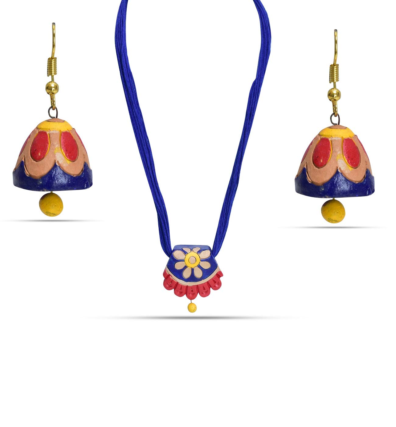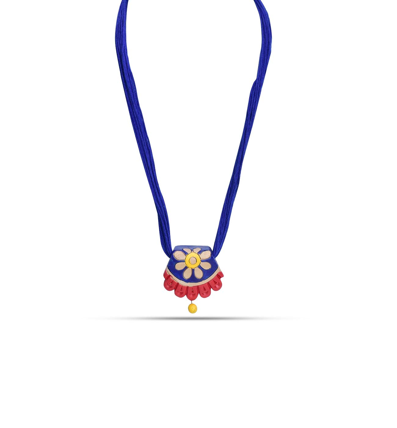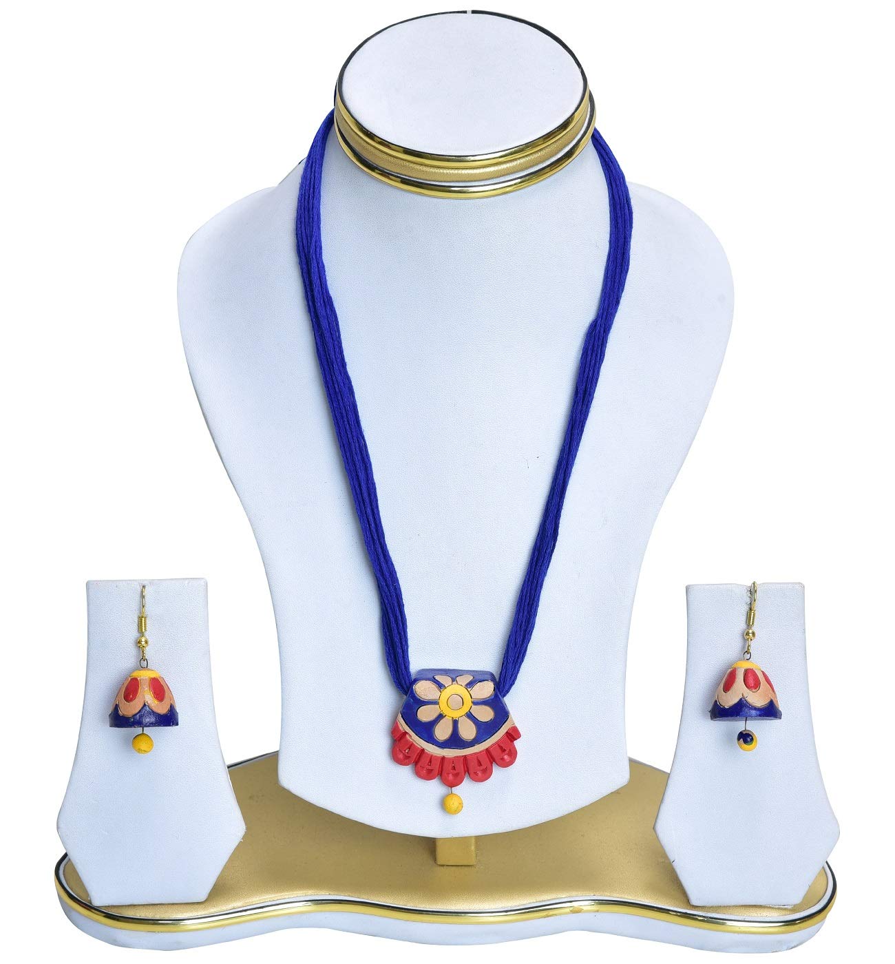 The product in display is made from terracotta material and is finished in an attractive blue color. Furthermore this product features a strand shape and a design that renders it with the versatility to be worn as a festive occasion wear.